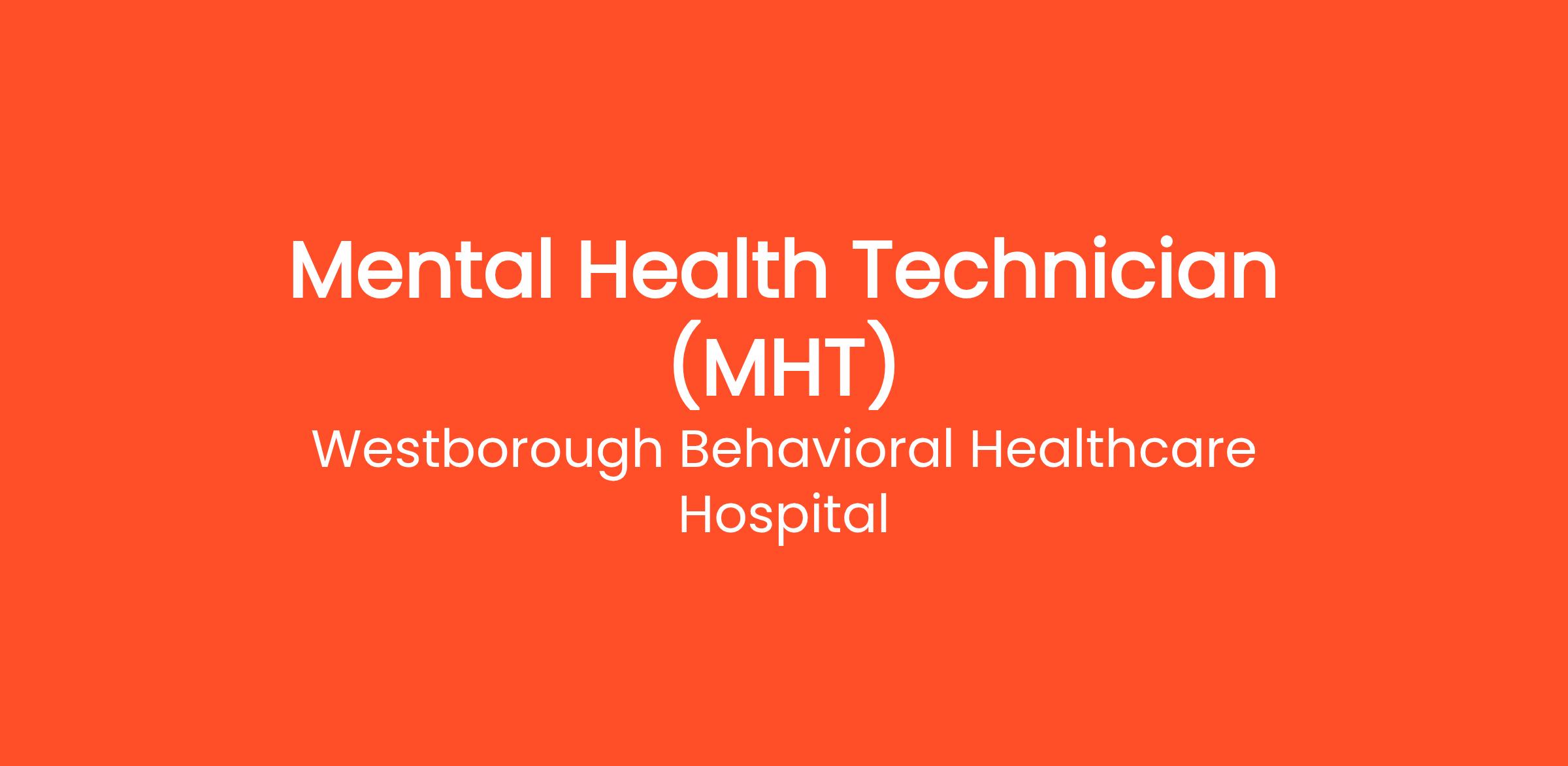 The Mental Health Technician, under the supervision of the Charge Nurse. The Mental Health Technician is responsible for maintaining a safe therapeutic milieu grounded in Westborough Behavioral Healthcare Hospital’s mission and core therapeutic principles.