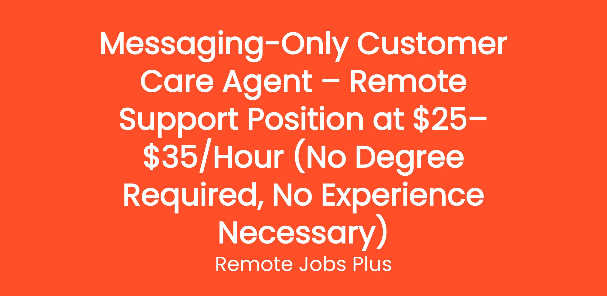 Messaging-Only Customer Care Agent – Remote Support Position at $25–$35/Hour (No Degree Required, No Experience Necessary)