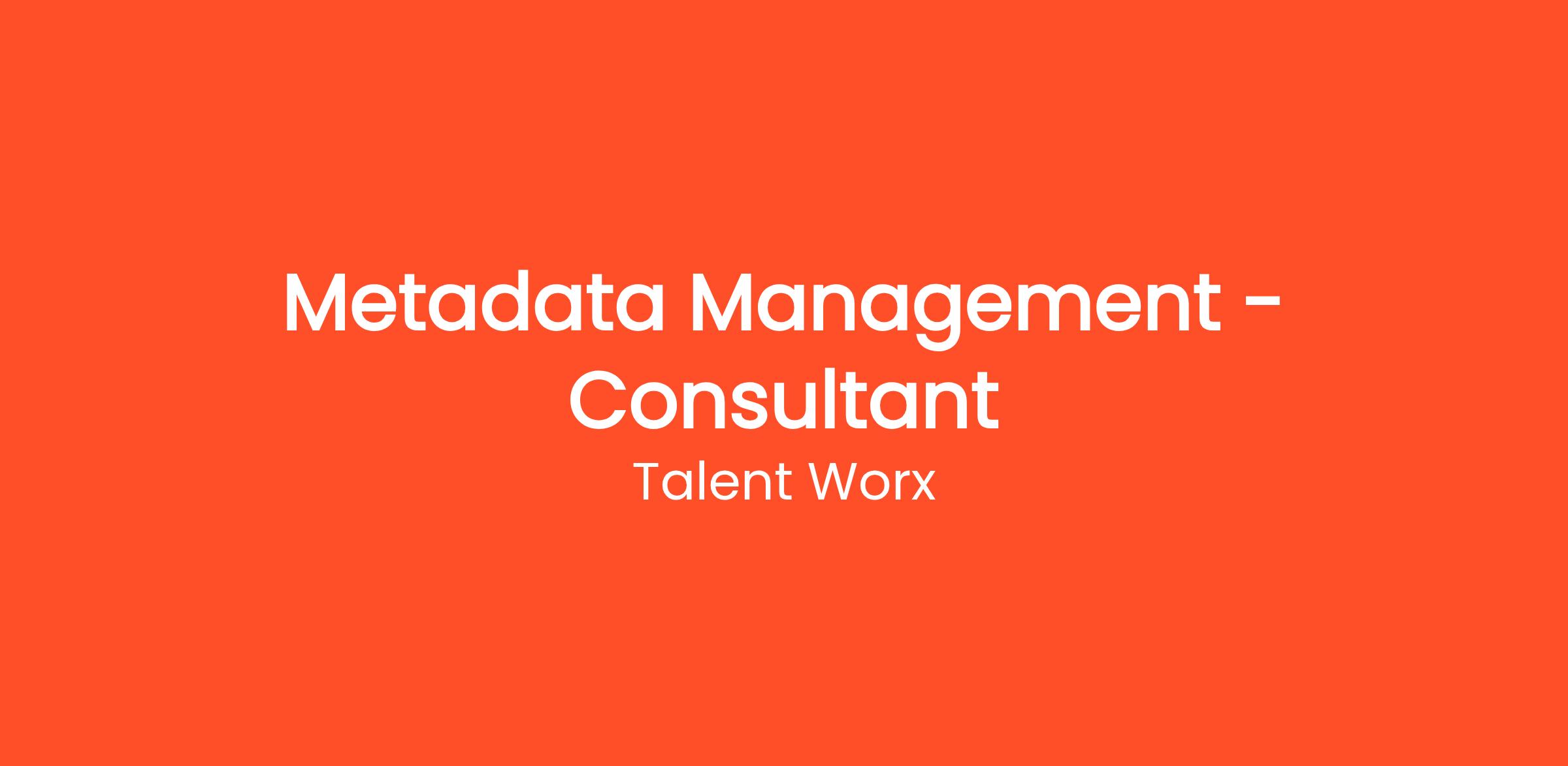 We are looking for a skilled Metadata Management Consultant to join our team. This role involves defining and implementing metadata management strategies and frameworks to ensure effective data governance and data quality across the organization. The ideal candidate will have experience in metadata management tools and practices, along with a solid understanding of data governance principles.