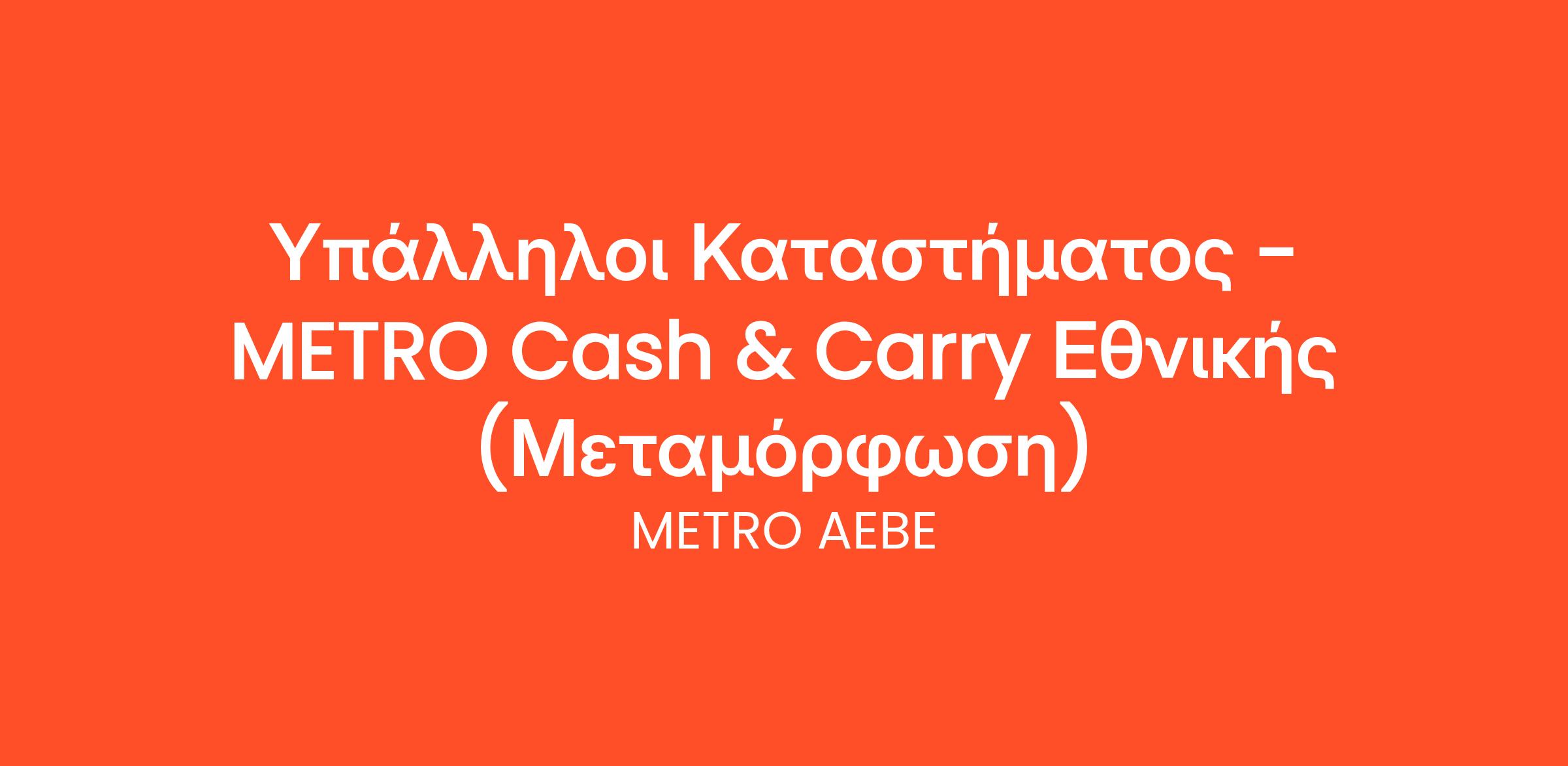 METRO Cash & Carry Εθνικής Οδού – Εδώ υπάρχει μια θέση για σένα!