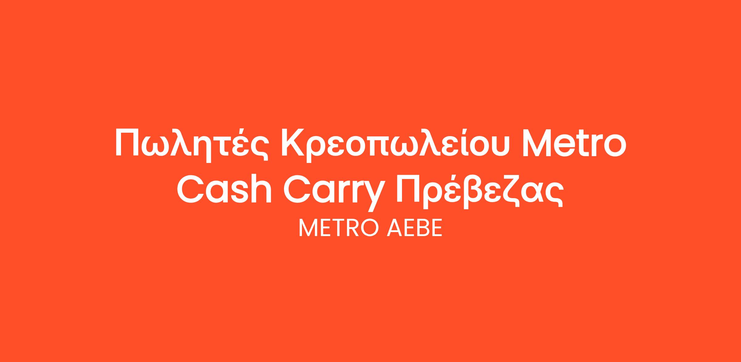 H METRO AEBE, 100% ελληνική εταιρία, είναι η πρώτη που ανέπτυξε από το 1976 το θεσμό των Cash & Carry στη χώρα. Αυτή τη στιγμή διαθέτει 50 σημεία πώλησης και αποτελεί το μεγαλύτερο δίκτυο καταστημάτων χονδρικής στη χώρα, κατέχοντας την πρώτη θέση σε πωλήσεις στον κλάδο.