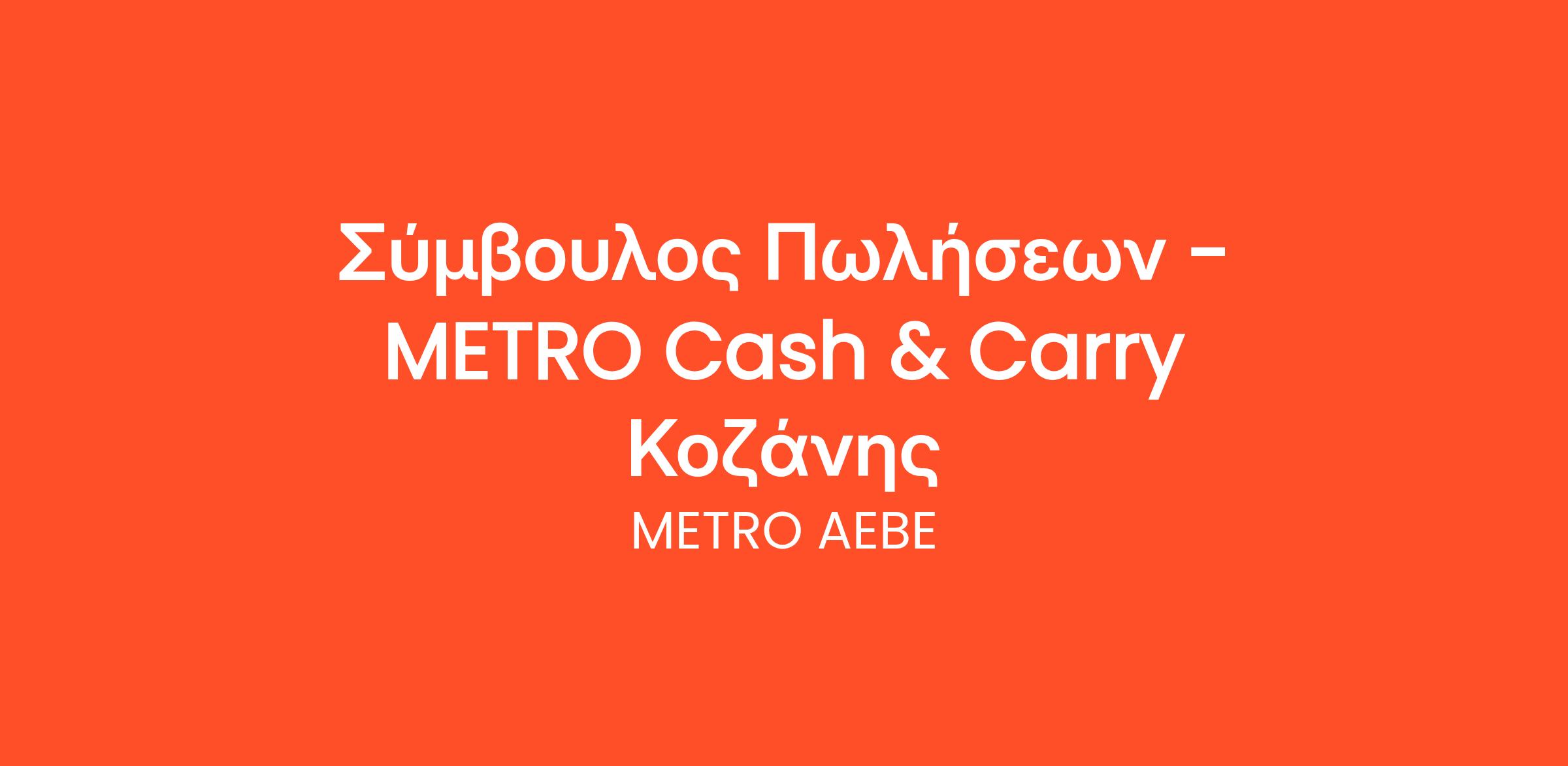 H METRO AEBE, 100% ελληνική εταιρία, είναι η πρώτη που ανέπτυξε από το 1976 το θεσμό των Cash & Carry στη χώρα. Αυτή τη στιγμή διαθέτει 50 σημεία πώλησης και αποτελεί το μεγαλύτερο δίκτυο καταστημάτων χονδρικής στη χώρα, κατέχοντας την πρώτη θέση σε πωλήσεις στον κλάδο.