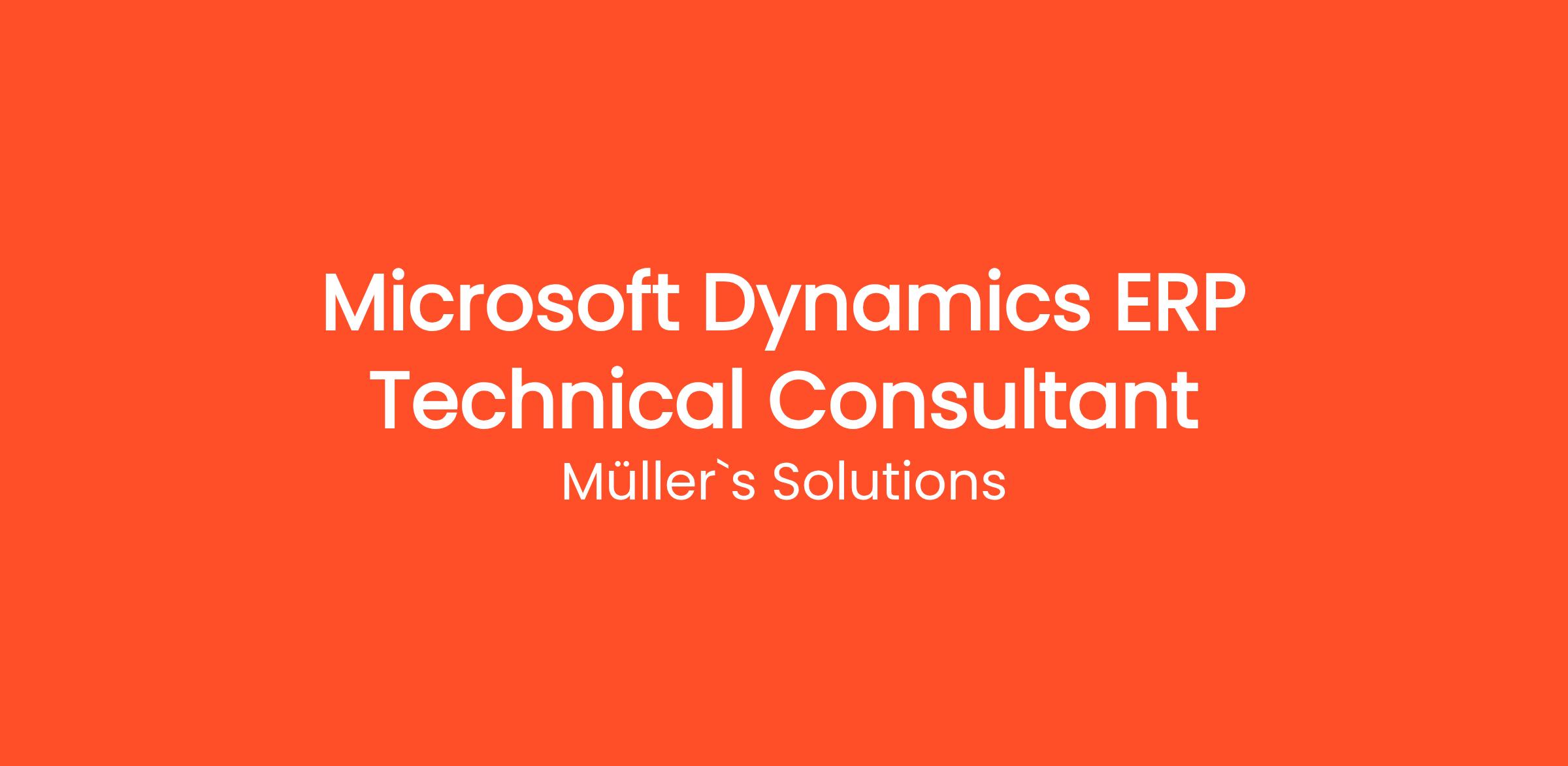 Müller's Solutions is on the lookout for a talented Microsoft Dynamics ERP Technical Consultant to join our team. In this role, you will leverage your technical expertise in Microsoft Dynamics ERP systems to support our clients in implementing, customizing, and optimizing ERP solutions tailored to their business requirements. You will be responsible for the end-to-end technical implementation of Microsoft Dynamics ERP applications, ensuring they meet the functional needs of our clients while adhering to best practices.