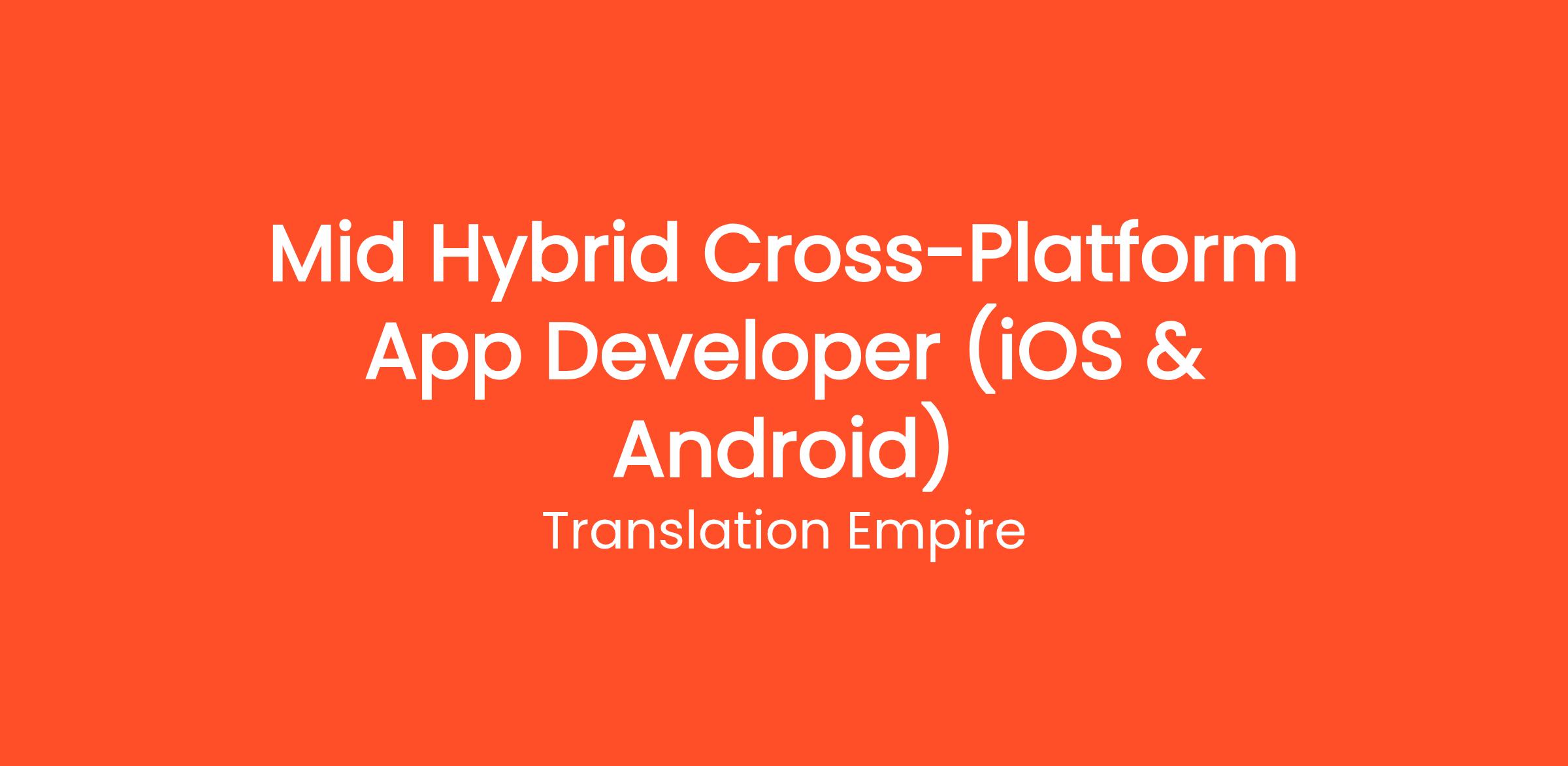 We are seeking a Mid-Senior Hybrid Cross-Platform App Developer to join our team. The ideal candidate will have 3-5 years of experience developing mobile applications for both iOS and Android using cross-platform frameworks like Flutter, React Native, or Ionic. You will collaborate with designers, backend developers, and other stakeholders to build and maintain high-quality mobile applications.