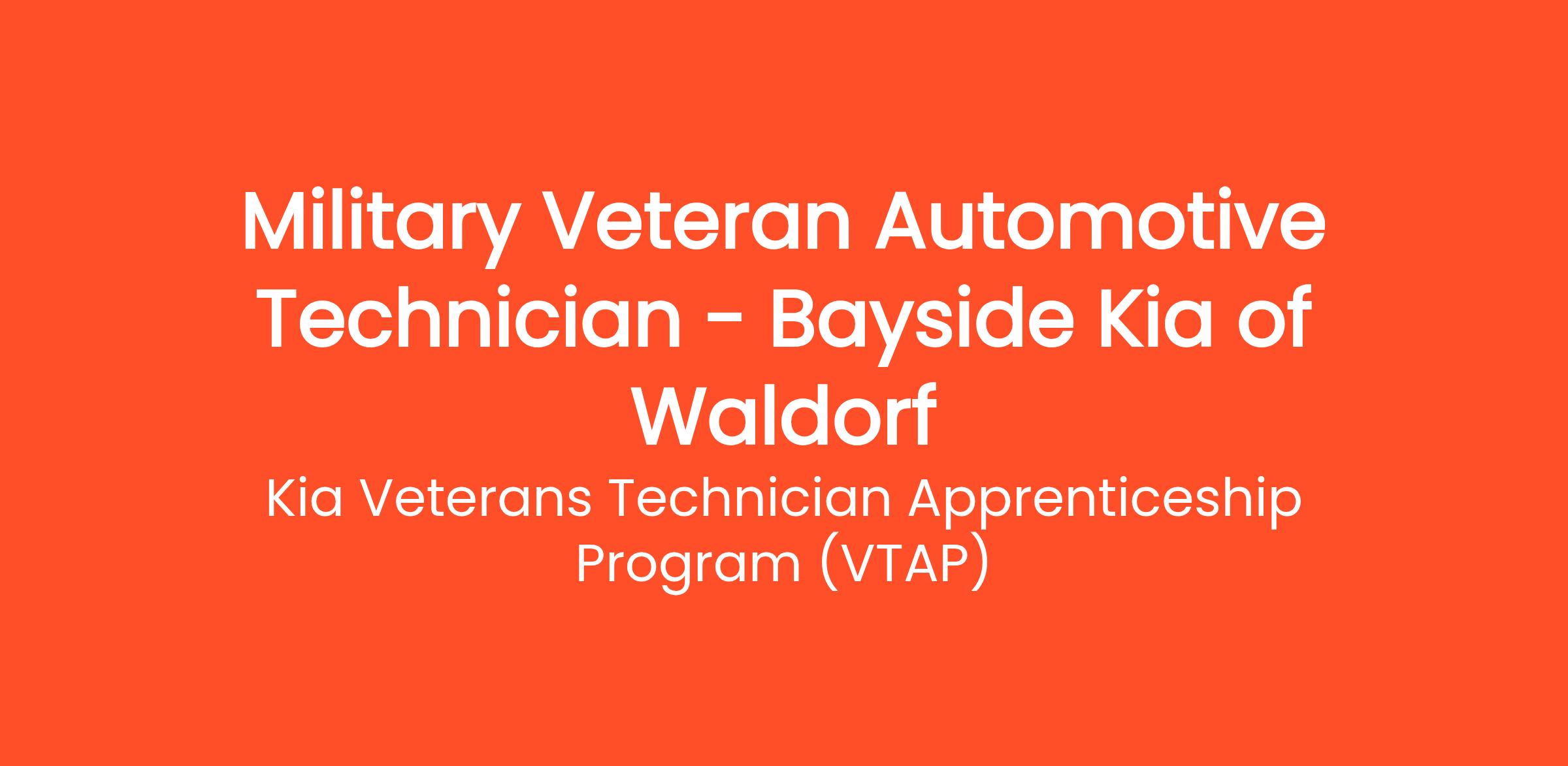 Military Veteran Automotive Technician - Bayside Kia of Waldorf