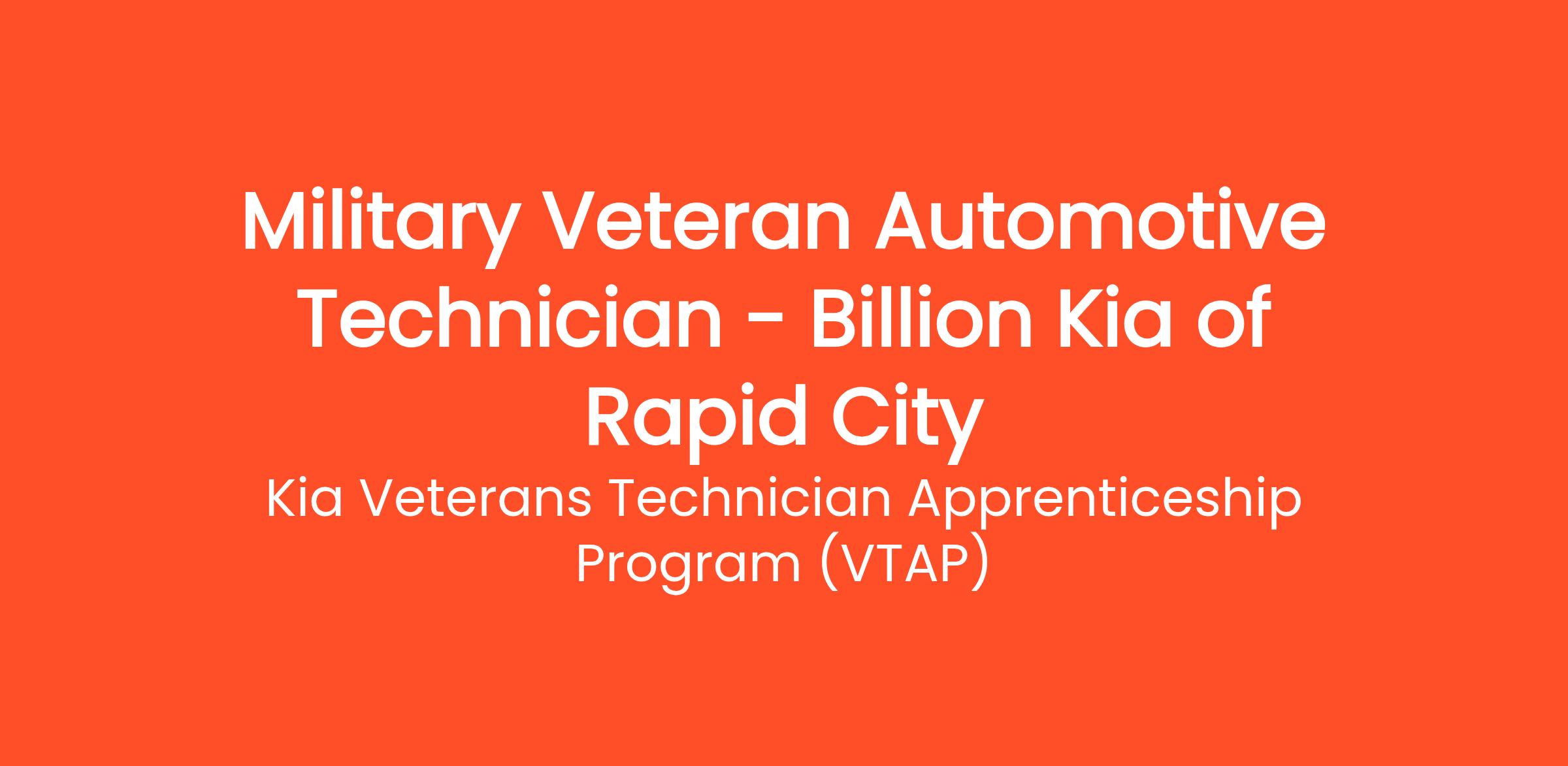 Military Veteran Automotive Technician - Billion Kia of Rapid City