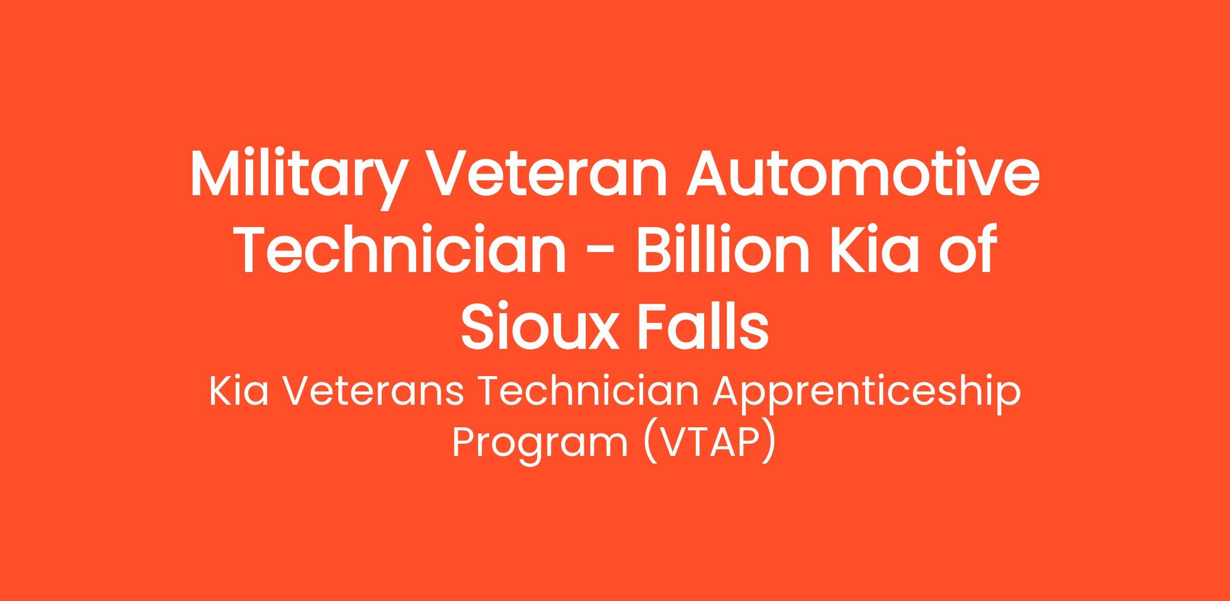 Military Veteran Automotive Technician - Billion Kia of Sioux Falls