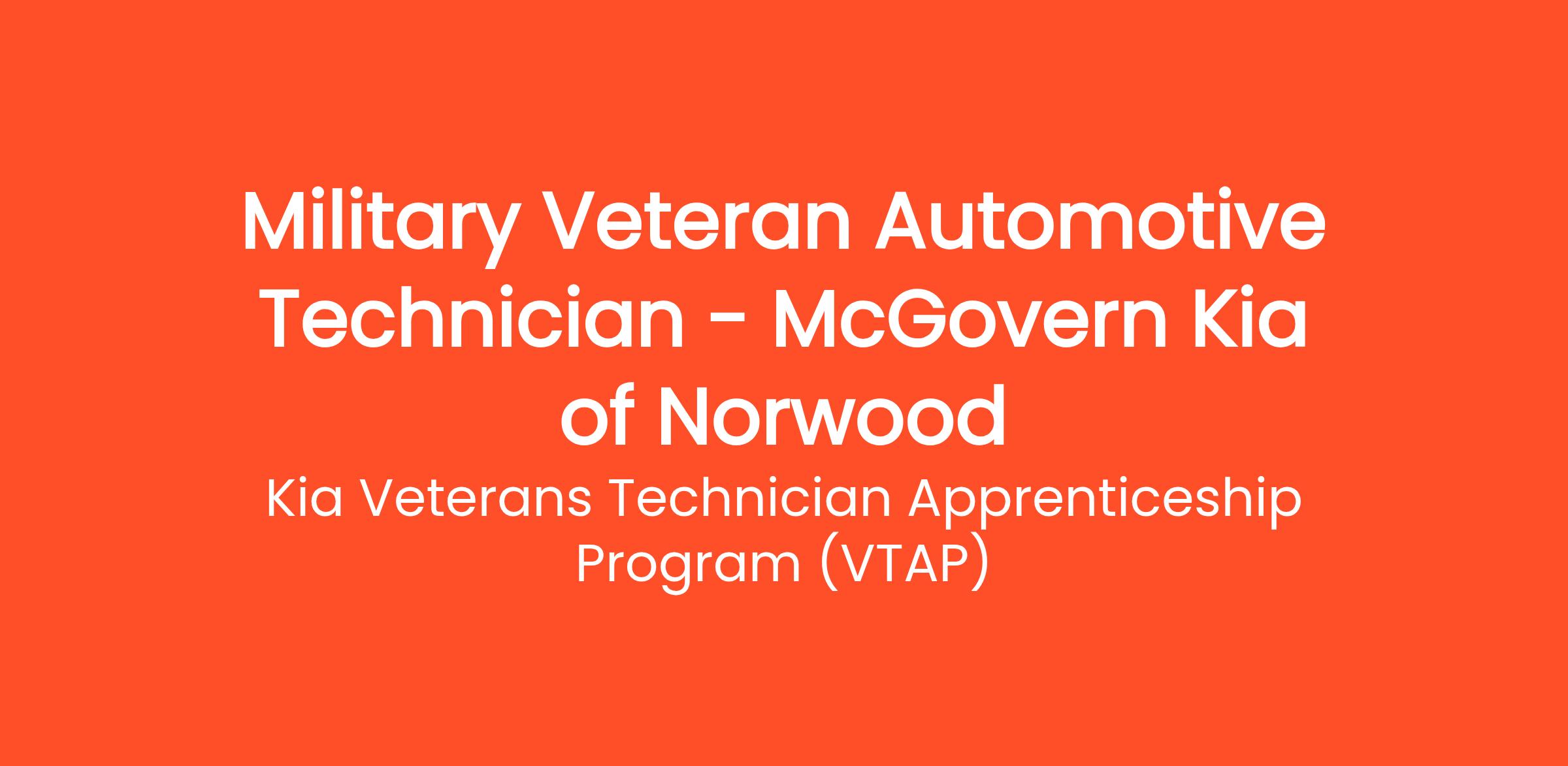 Military Veteran Automotive Technician - McGovern Kia of Norwood