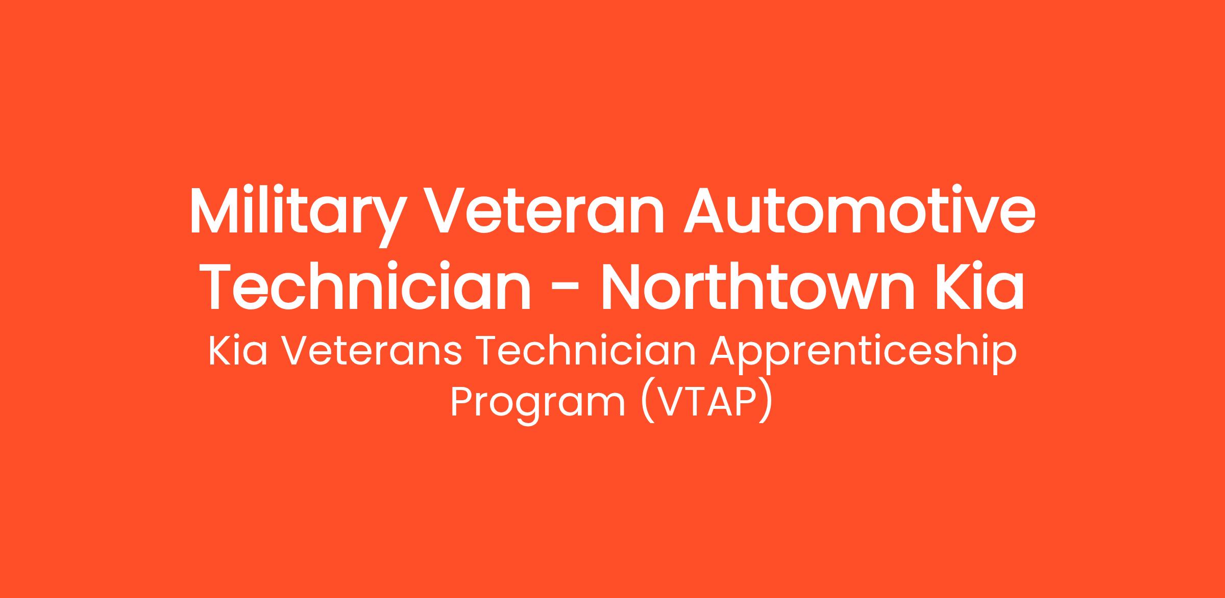 Kia Retailers are offering skilled and experienced military Veterans with the opportunity to begin an inspiring career as a Kia Certified Service Technician. To support this Kia Retailer initiative, Kia America, Inc. has established the Kia Veterans Technician Apprenticeship Program (VTAP).