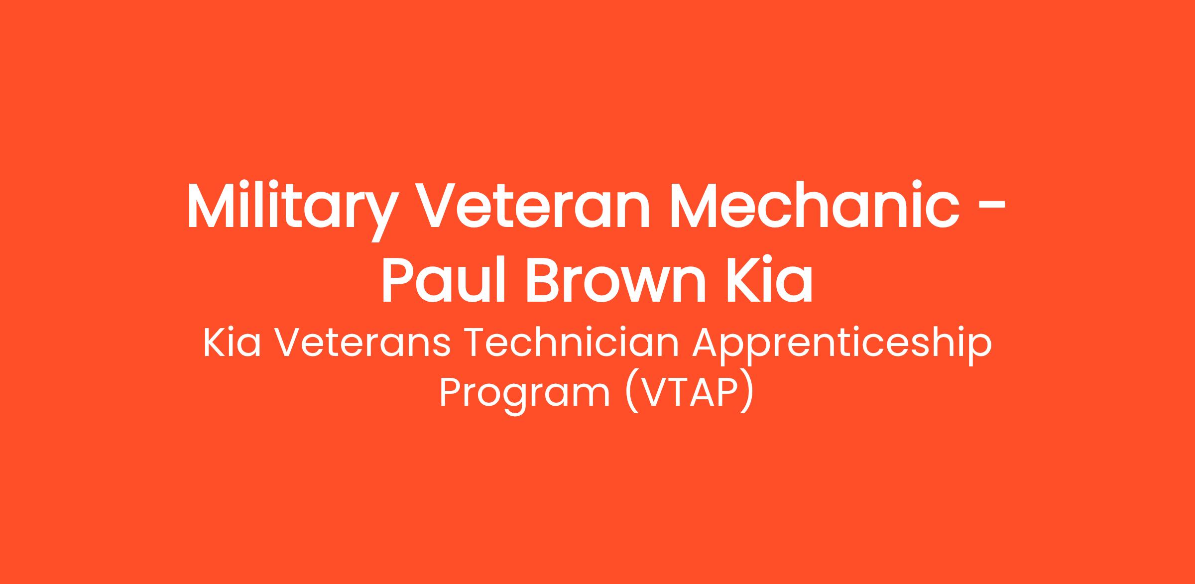 Kia Veterans Technician Apprenticeship Program (VTAP)
