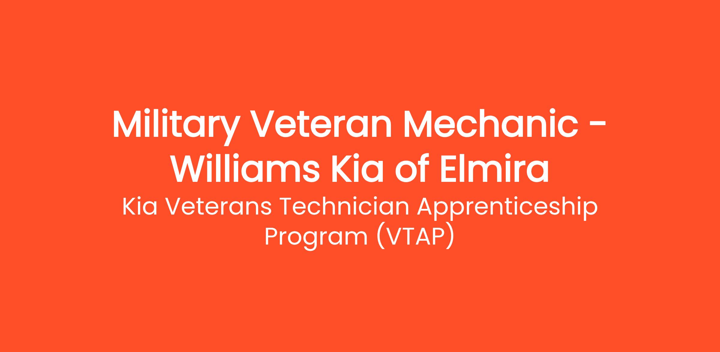 Kia Retailers are offering skilled and experienced military Veterans with the opportunity to begin an inspiring career as a Kia Certified Service Technician. To support this Kia Retailer initiative, Kia America, Inc. has established the Kia Veterans Technician Apprenticeship Program (VTAP).