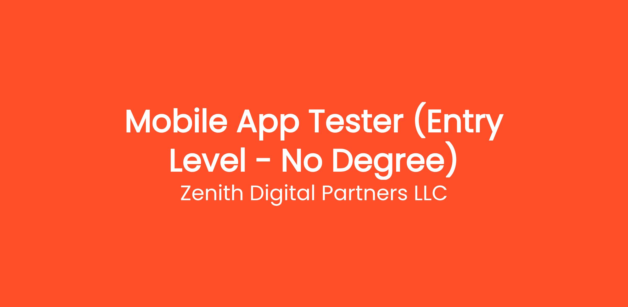 Are you highly organized and looking for the perfect entry-level opportunity? Zenith Digital Partners LLC is currently seeking a Mobile App Tester (Entry Level - No Degree) to join our rapidly growing remote team. If you've been searching for remote jobs no degree or overnight remote jobs, this is the exact role you've been looking for. No degree required and no prior experience is necessary—we provide comprehensive training to all new hires! You will be responsible for critical daily operations, managing secure platforms, and contributing to our vibrant digital culture.