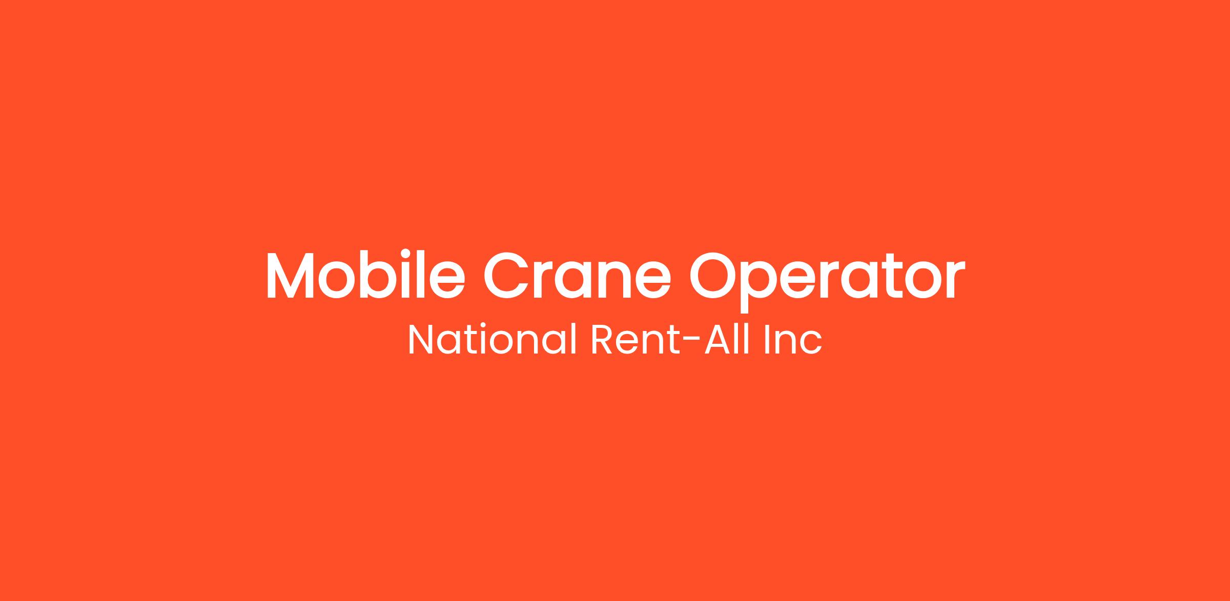 National Rent-All Inc. is looking for a Crane Operator who will be responsible for running mobile cranes ranging in capacity from 22 tonne up to 350 tonne. Our fleet includes 20+ tonne boom cranes, an 80 tonne Terex AT crane, and a Grove 350 tonne crane.