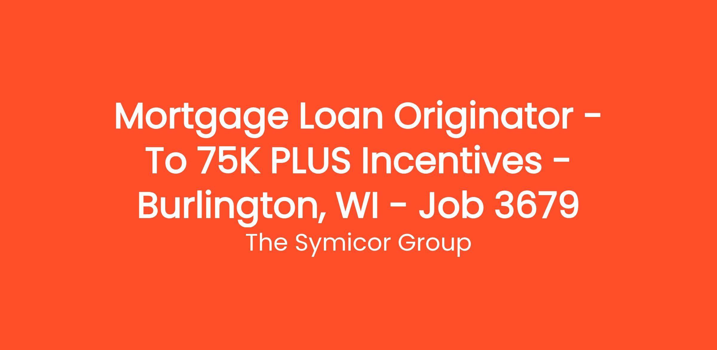 Mortgage Loan Originator – To $75K PLUS Incentives – Burlington, WI – Job # 3679