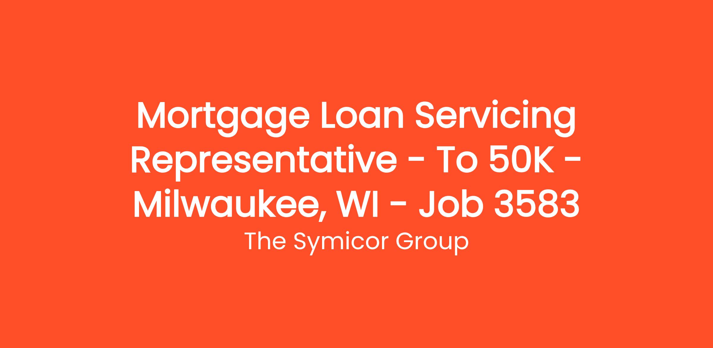 Mortgage Loan Servicing Representative – To $50K – Milwaukee, WI – Job # 3583