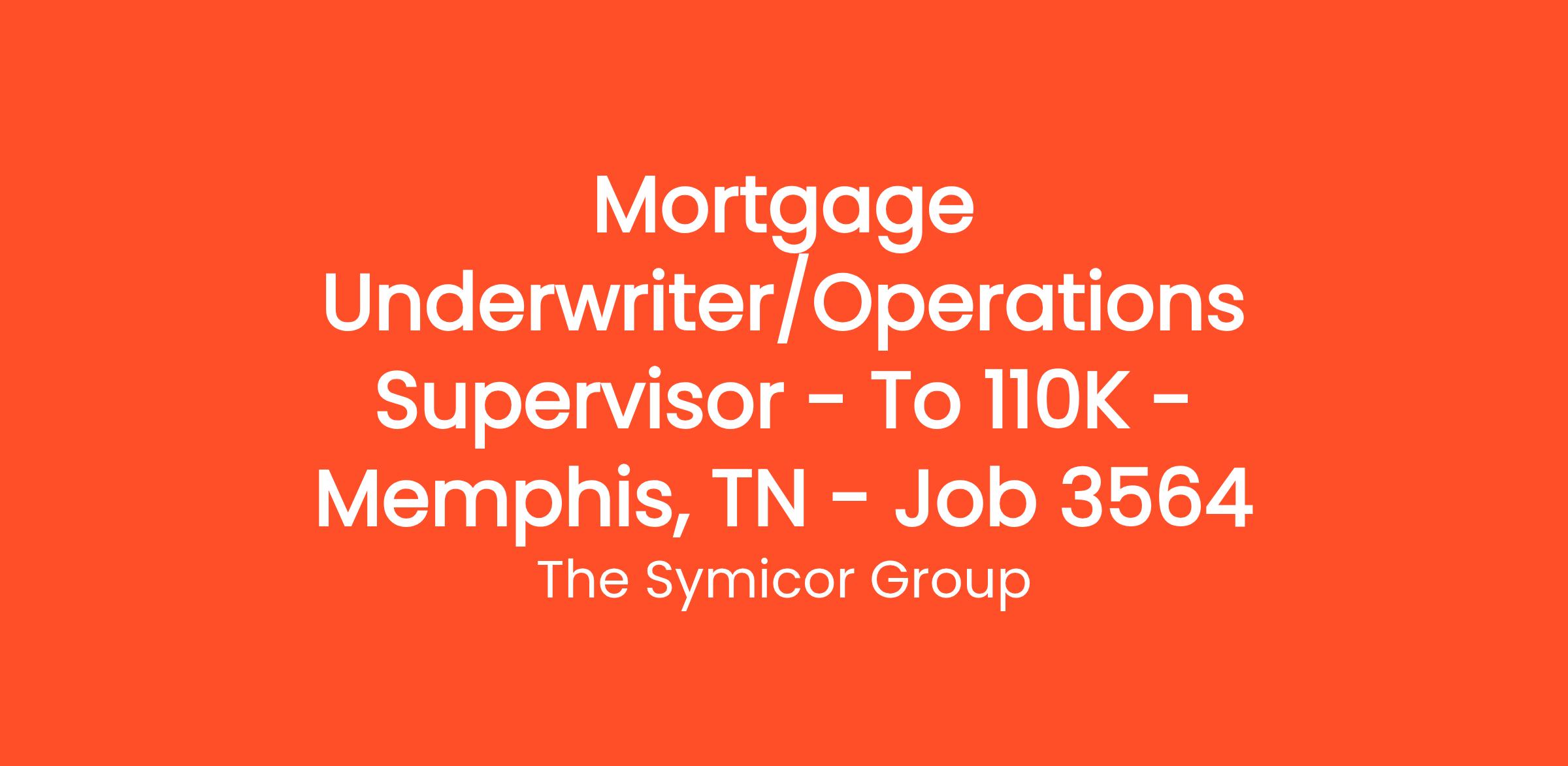 Mortgage Underwriter/Operations Supervisor - To $110K - Memphis, TN - Job # 3564