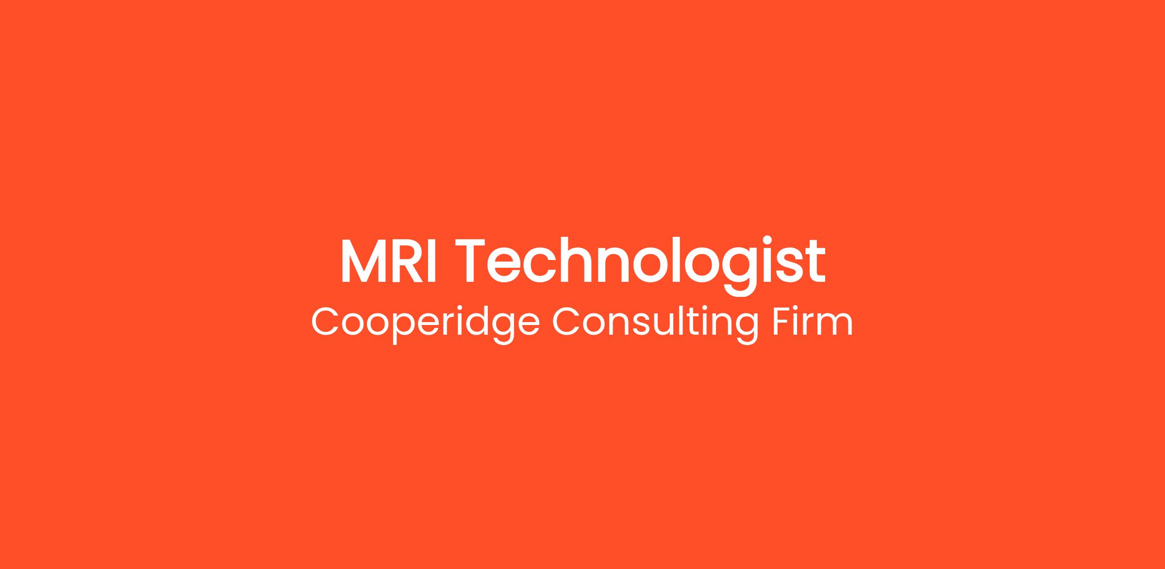 Cooperidge Consulting Firm is seeking an MRI Technologist for a top Healthcare client.