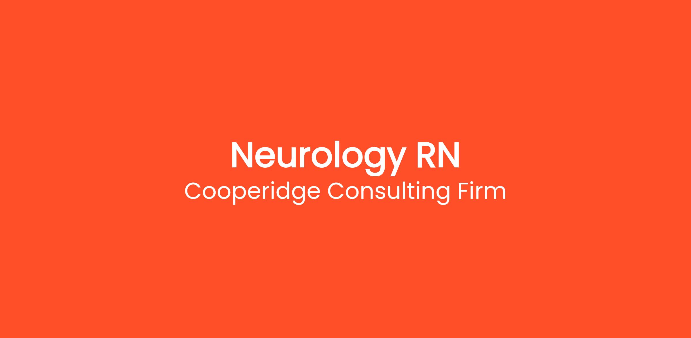 Cooperidge Consulting Firm is seeking a Neurology Registered Nurse (RN) for a top Healthcare client.