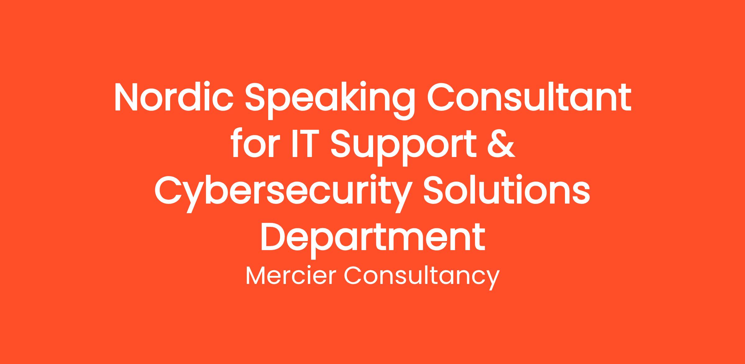 Mercier Consultancy is excited to offer an opportunity for a Nordic Speaking Consultant to join our Client's IT Support & Cybersecurity Solutions Department. In this key Entry Level role, you will provide support and consultation to our Nordic-speaking clients, guiding them through their IT and cybersecurity challenges. Your contribution will be essential in helping clients secure their systems and optimize their IT operations.