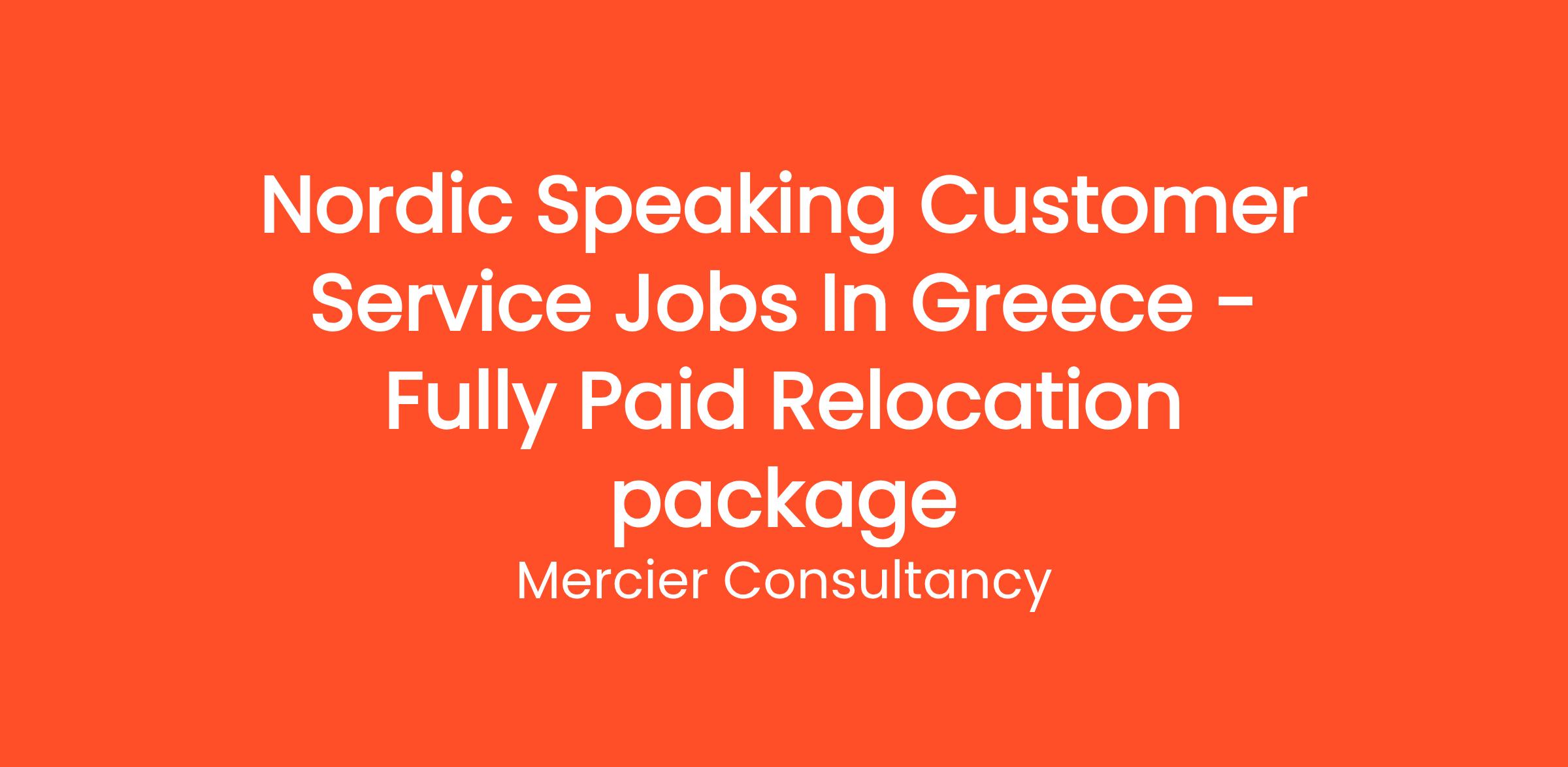 Mercier Consultancy is excited to offer a unique opportunity for Nordic Speaking Customer Service Representatives to join our team in Greece! This role comes with a fully paid relocation package, allowing you to seamlessly transition to a new life in a vibrant and beautiful country. In this position, you will provide outstanding support to our Nordic-speaking clients, ensuring their needs are met with professionalism and efficiency.