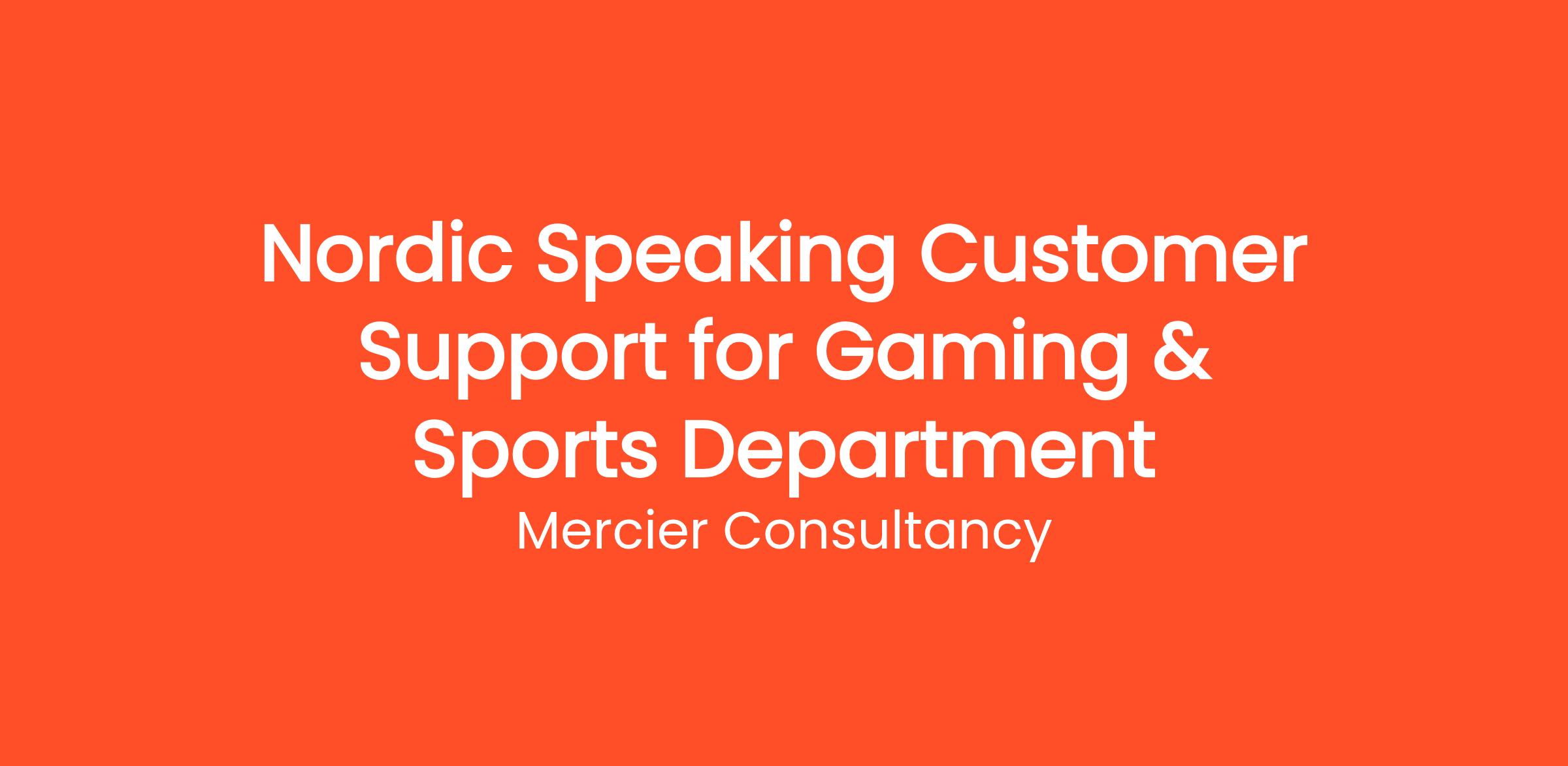 Mercier Consultancy is excited to offer an opportunity for a Nordic Speaking Customer Support Representative for our Client's Gaming & Sports Department! In this engaging Junior role, you will be the key support contact for our Nordic-speaking clients, providing assistance and information regarding our gaming and sports offerings. Your ability to communicate effectively in Nordic languages will enable you to deliver exceptional customer experiences.