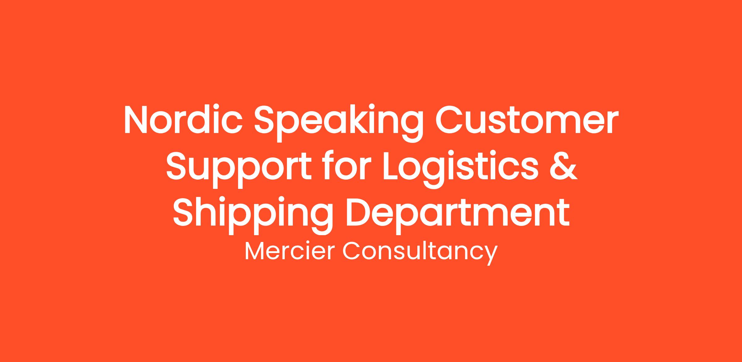 Mercier Consultancy is thrilled to announce an opening for a Nordic Speaking Customer Support Representative for our Client's Logistics & Shipping Department! In this vital Junior role, you will be the primary contact for our Nordic-speaking clients, providing outstanding support regarding their shipping and logistics needs. Your language skills will be essential in delivering a smooth and efficient service experience.