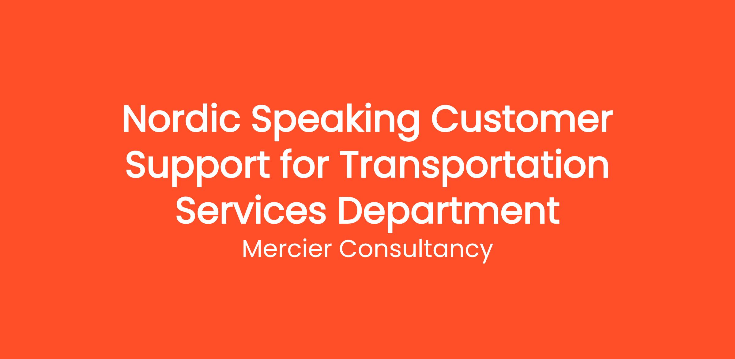 Mercier Consultancy is excited to invite applications for the position of Nordic Speaking Customer Support Representative in our Transportation Services Department! In this role, you will serve as the key contact for our Nordic-speaking clients, providing exceptional support and guidance regarding their transportation needs. Your linguistic skills will allow you to effectively communicate and assist customers in their preferred language.