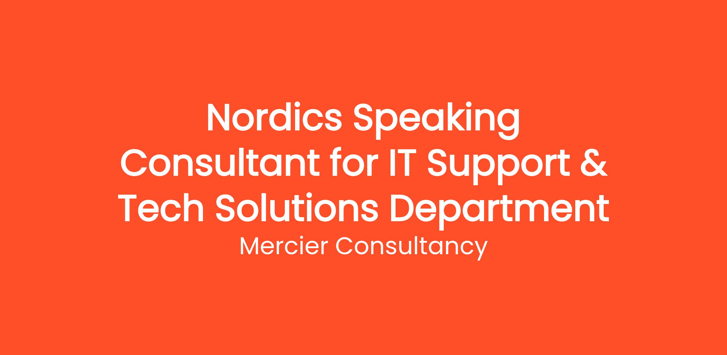 Mercier Consultancy is excited to offer the position of Nordics Speaking Consultant for our Client's IT Support & Tech Solutions Department. In this important Entry Level role, you will be the primary support liaison for our clients across the Nordics region, assisting them with their IT and technical challenges while ensuring smooth operations.