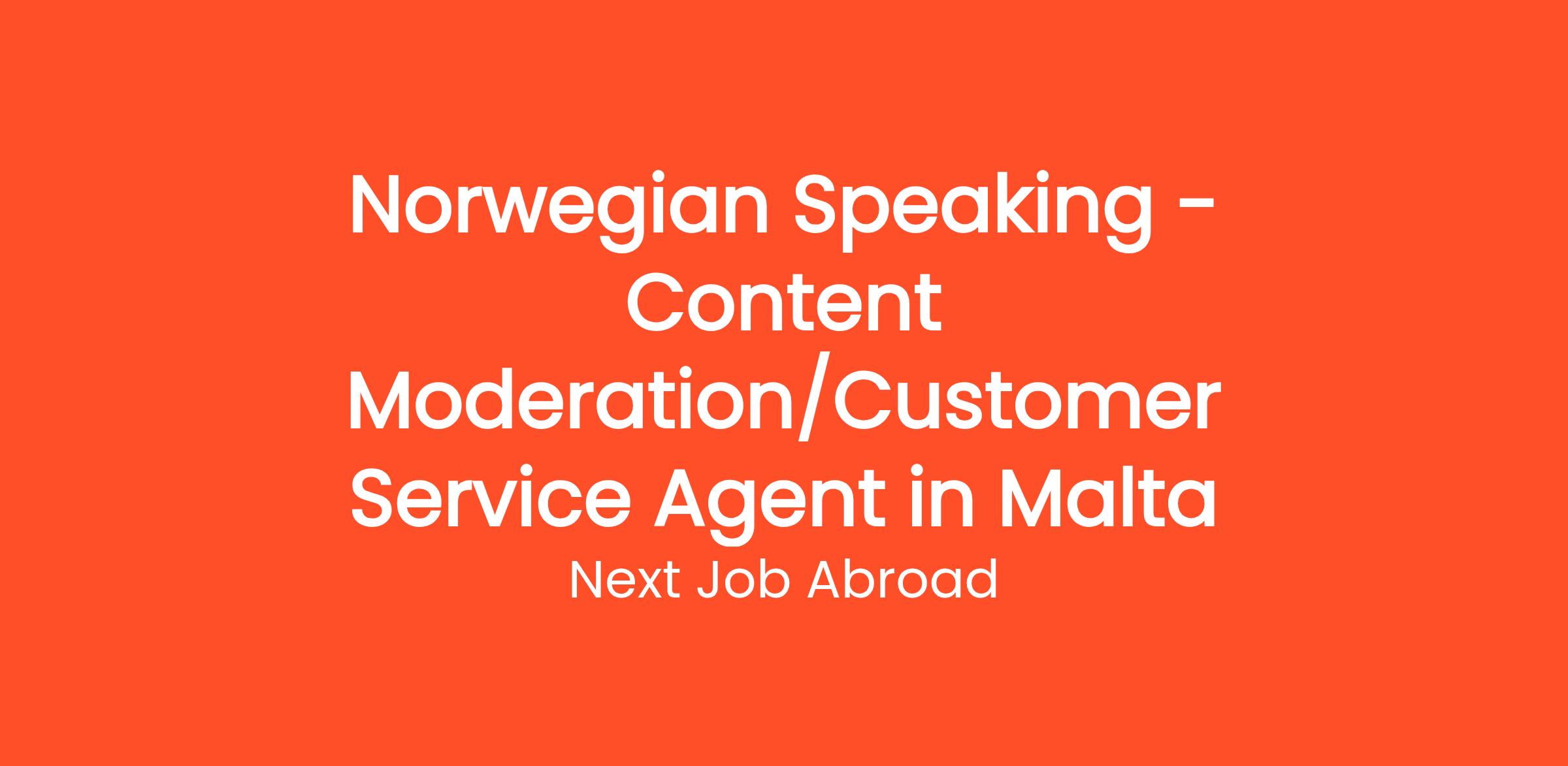 Join Next Job Abroad as a Norwegian Speaking Content Moderation/Customer Service Agent in the vibrant iGaming industry in Malta! This exciting position allows you to utilize your language skills and passion for ensuring a safe and engaging online environment for players. As part of our dedicated team, your role will encompass both content moderation and delivering excellent customer service to our Norwegian-speaking clientele.