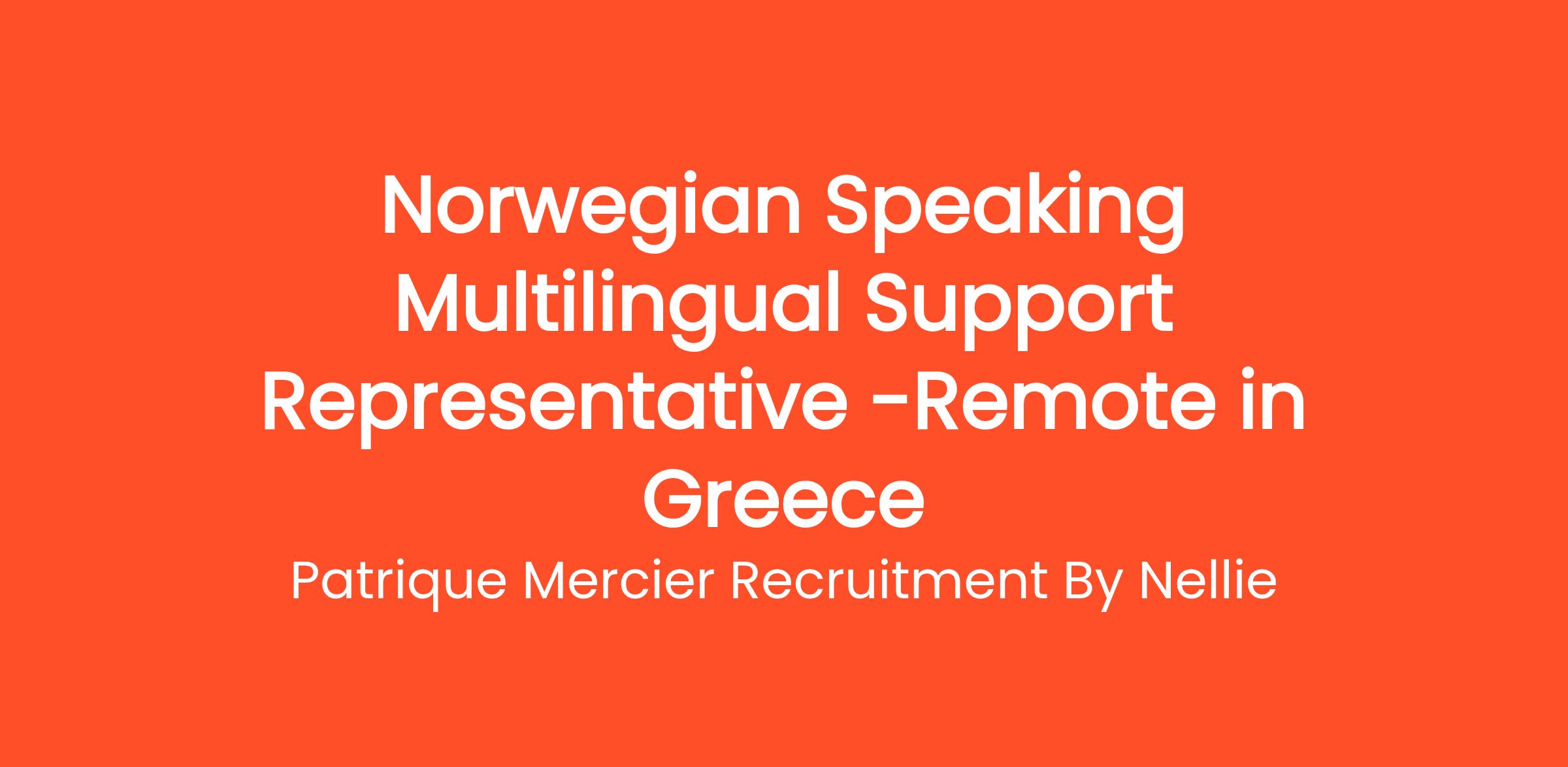 Patrique Mercier Recruitment FR is excited to offer a remarkable opportunity for a Norwegian Speaking Multilingual Support Representative. This position is tailored for dynamic individuals who excel in providing top-tier customer support and can communicate fluently in multiple languages.