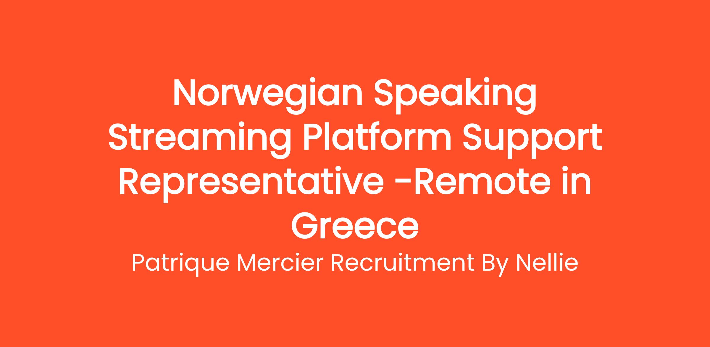 Patrique Mercier Recruitment FR is looking for a Norwegian Speaking Streaming Platform Support Representative to join our dedicated support team. In this role, you will be instrumental in assisting Norwegian-speaking users with their inquiries and ensuring they have a seamless experience while using our streaming platform. If you have a passion for customer service and technology, we want to talk to you!