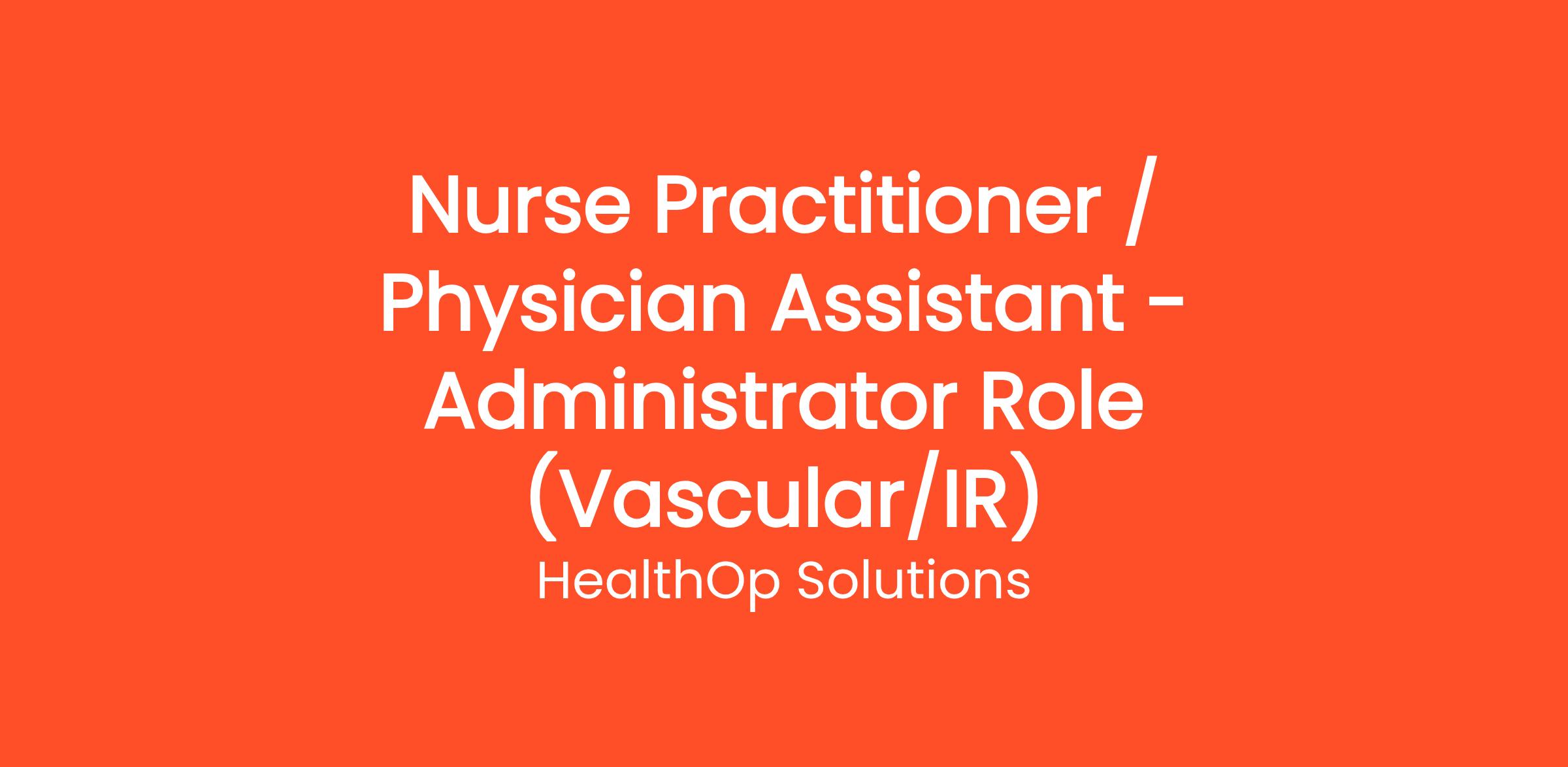 Job Title: Nurse Practitioner / Physician Assistant - Administrator Role (Vascular/IR)
