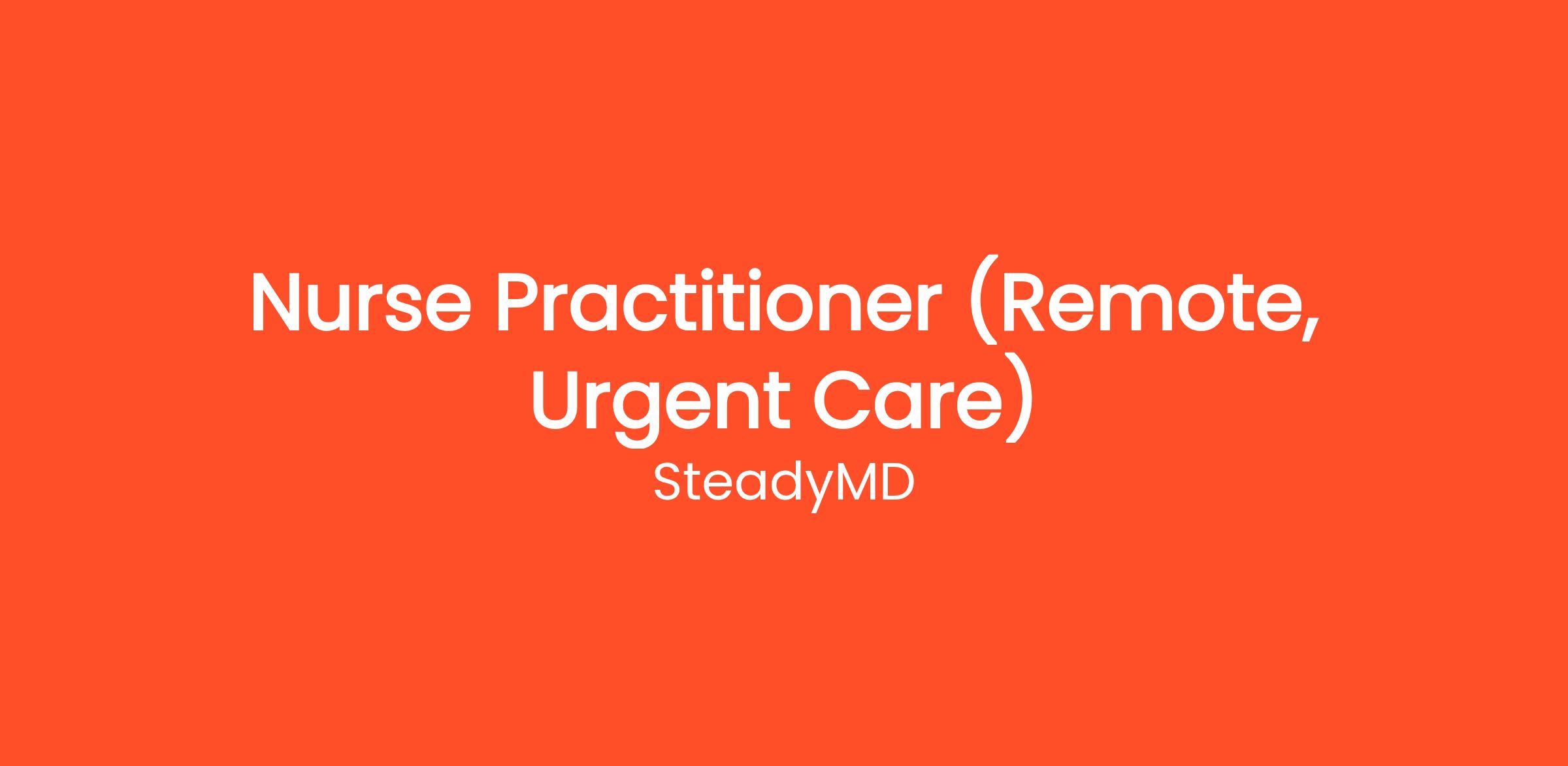SteadyMD is excited to invite Nurse Practitioners with licenses in at least 5 states (3 of which must be in AZ, WA, PA, MN, CA, TX, or NY) to join our diverse and growing talent pool for a potential role in our urgent care telehealth program.
