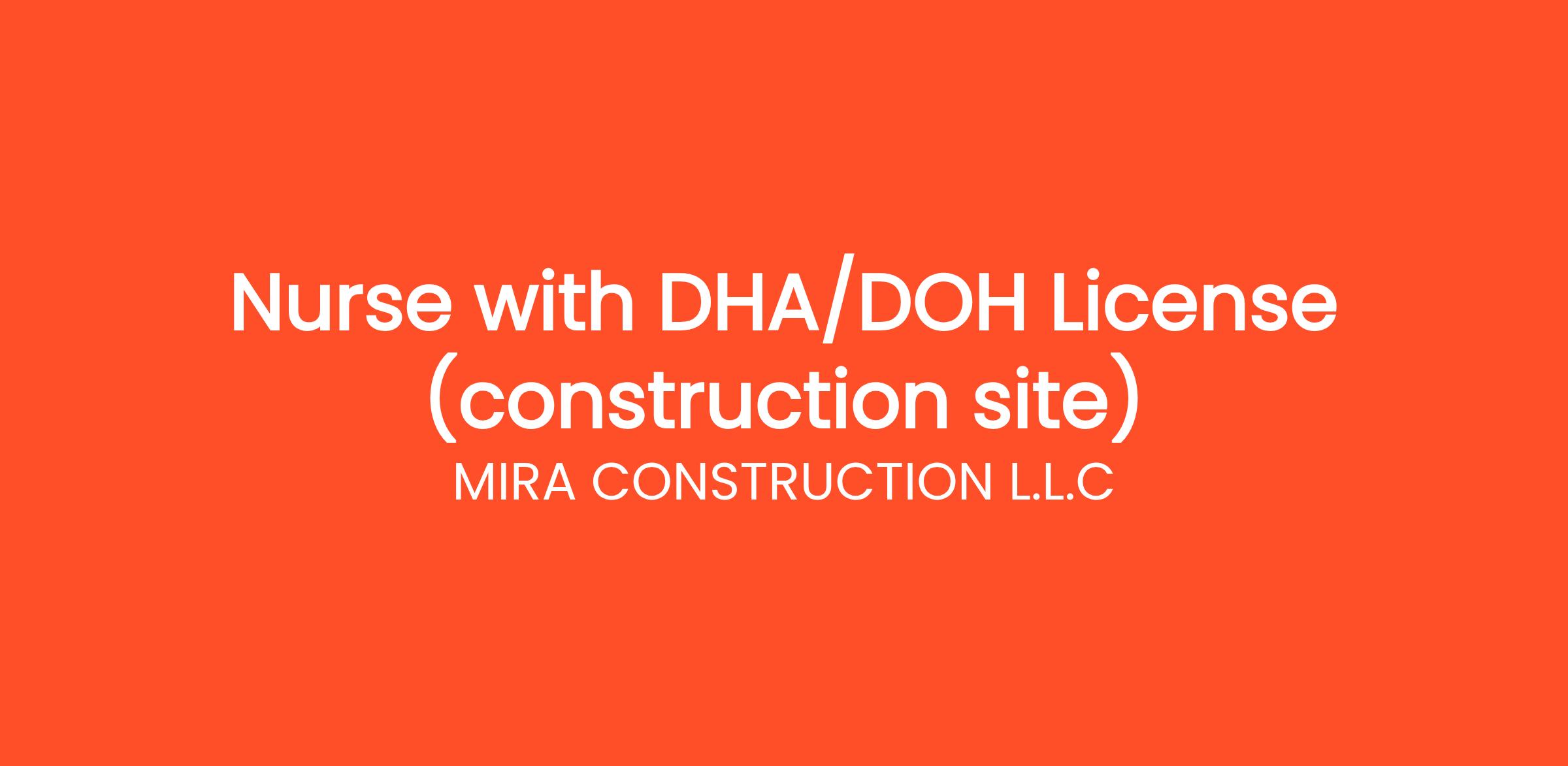 We are looking for a qualified Nurse with DHA/DOH License to join our team at MIRA CONSTRUCTION L.L.C!