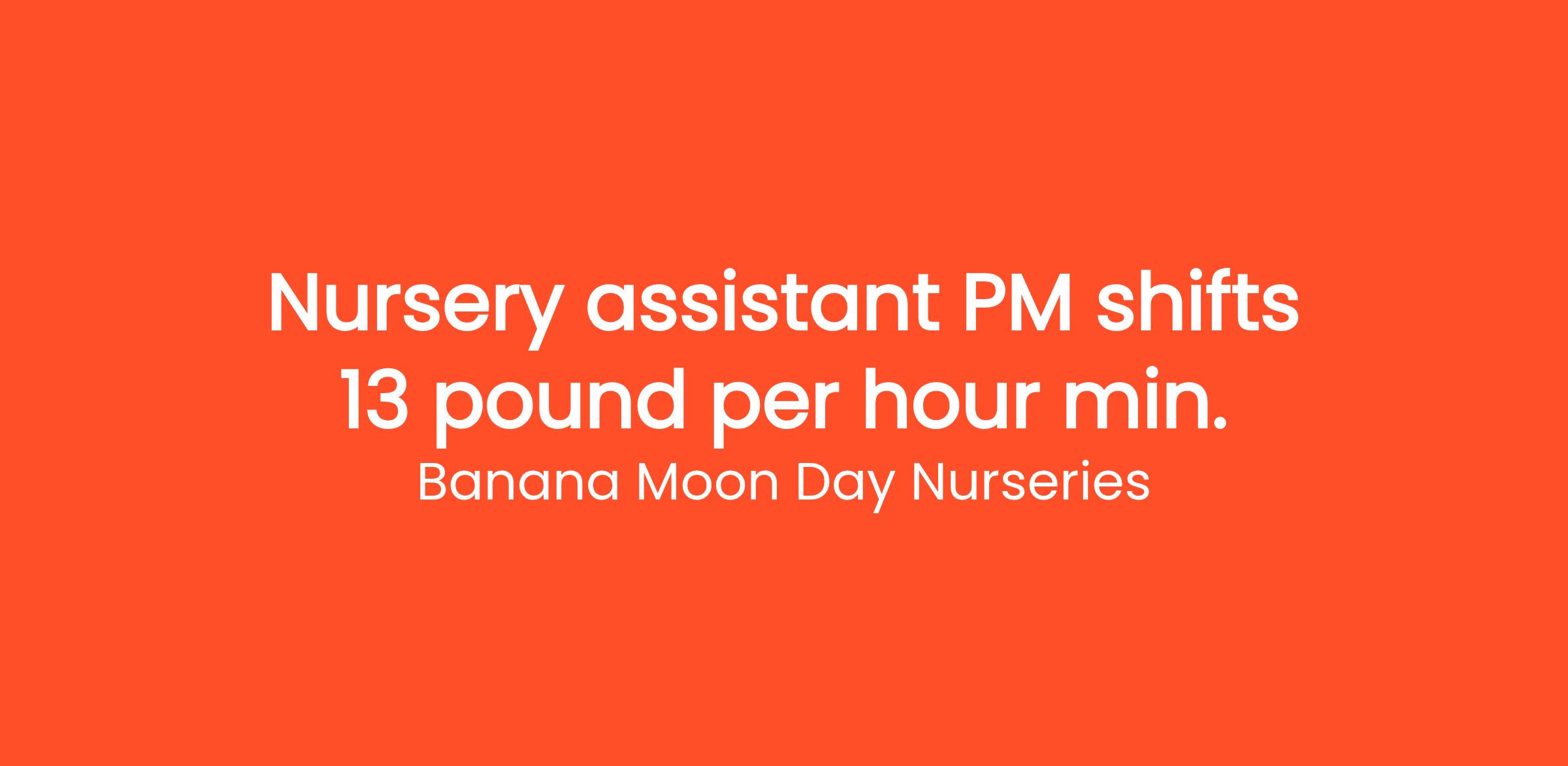 Banana Moon Day Nurseries is excited to announce an opening for a Nursery Assistant for PM shifts at our wonderful nursery. If you have a passion for working with children and want to contribute positively to their early development, we encourage you to apply!