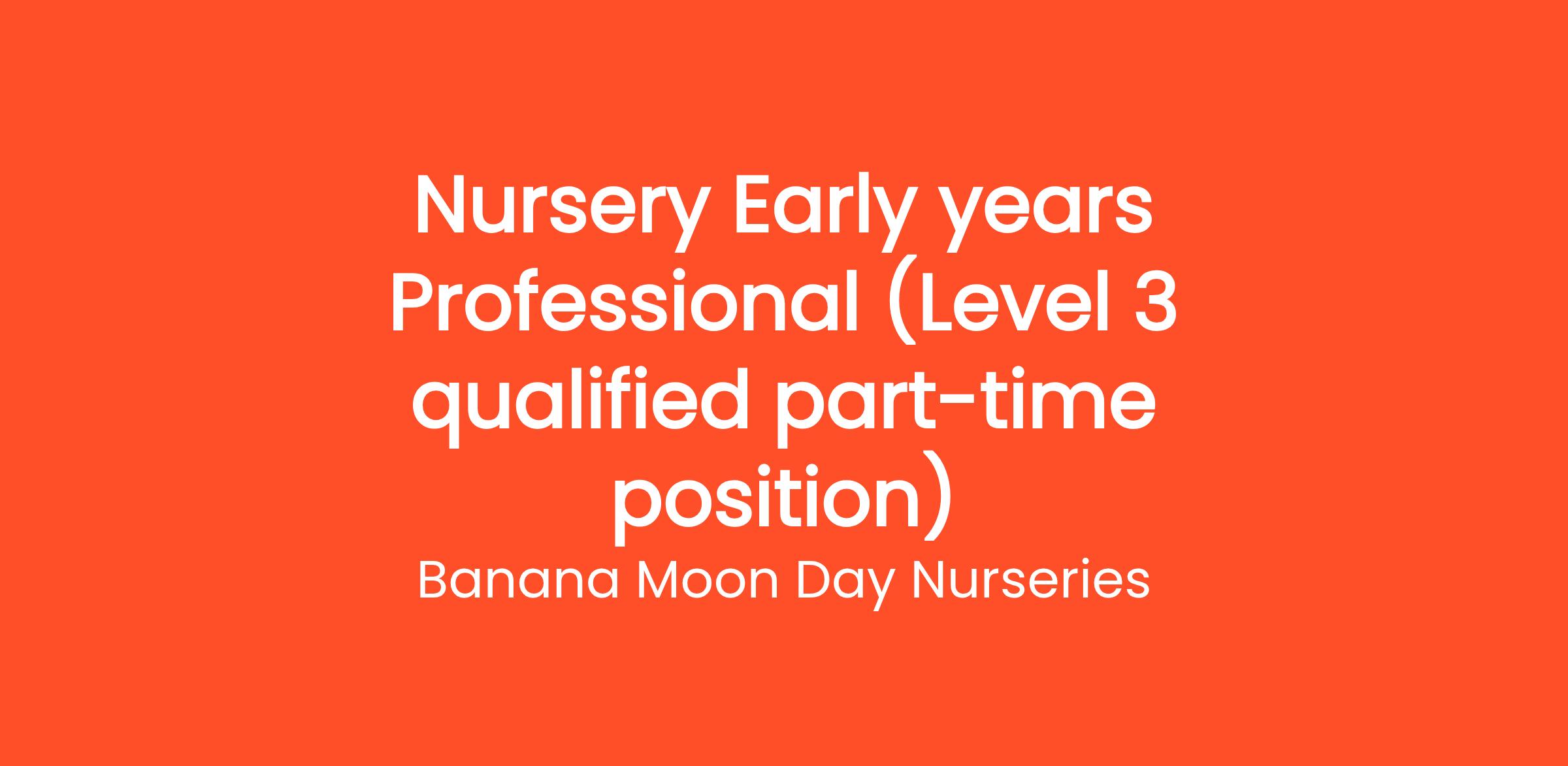 Here at Banana Moon Hamilton, we are looking for a Part Time enthusiastic, energetic and motivated, Early years professional, qualified to Level 3 or above to join our ever-growing nursery team.