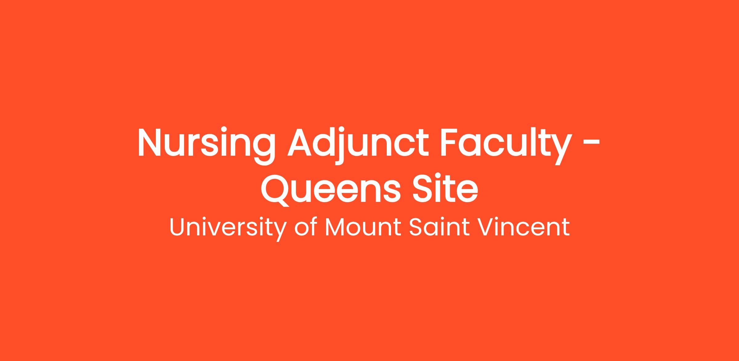 College of Mount Saint Vincent invites applications for adjunct faculty to teach at our Queens location at 37-02 Queens Boulevard in Long Island City. Our accredited (Commission on Collegiate Nursing Education -CCNE) Nursing program is seeking adjunct faculty to teach onsite didactic content in the following areas: