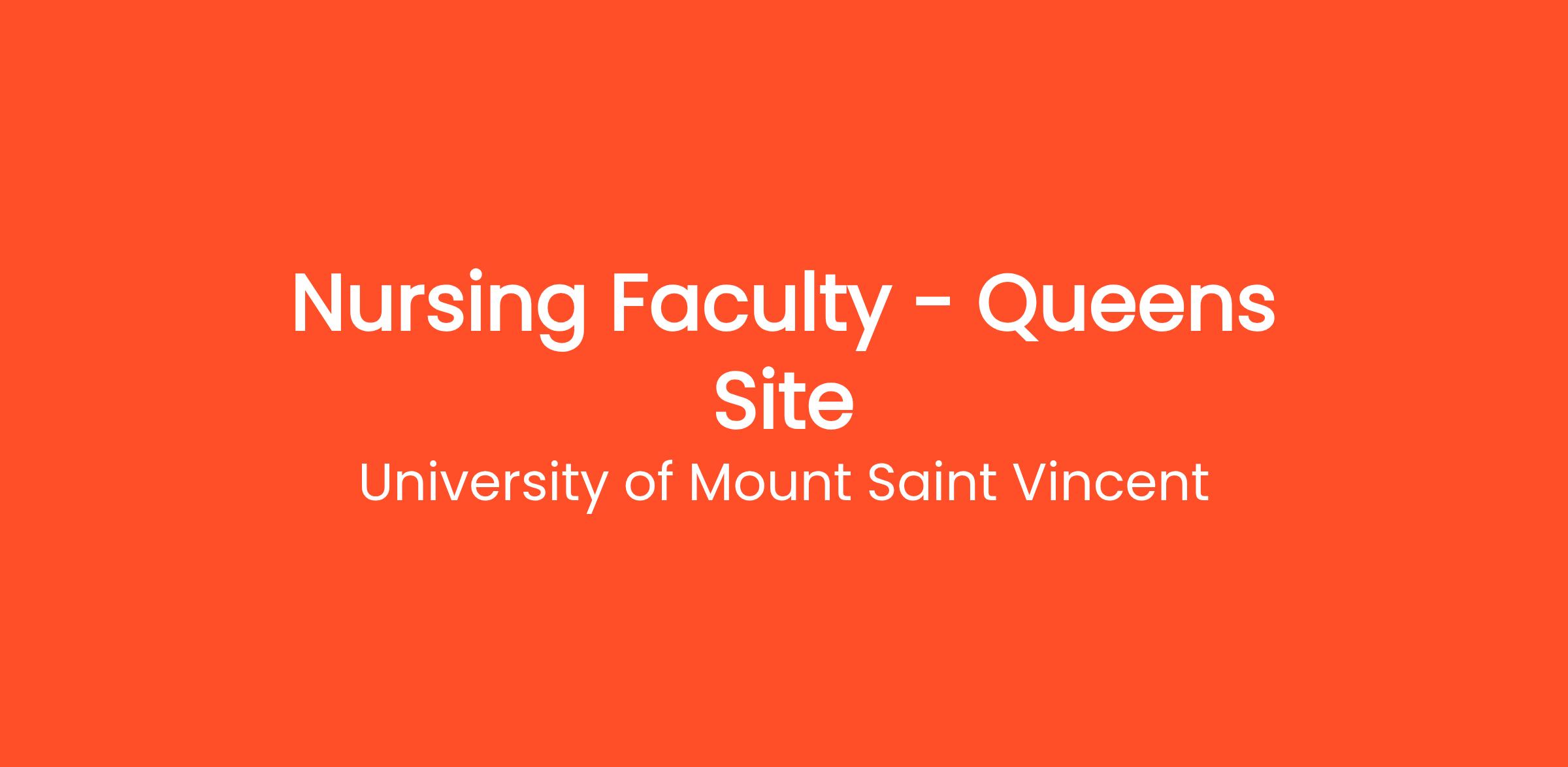 University of Mount Saint Vincent invites applications for faculty to teach at our Queens location at 37-02 Queens Boulevard in Long Island City. Our accredited (Commission on Collegiate Nursing Education -CCNE) Nursing program is seeking faculty to teach in our accelerated baccalaureate program. These positions are appointments with salary commensurate with credentials and experience.