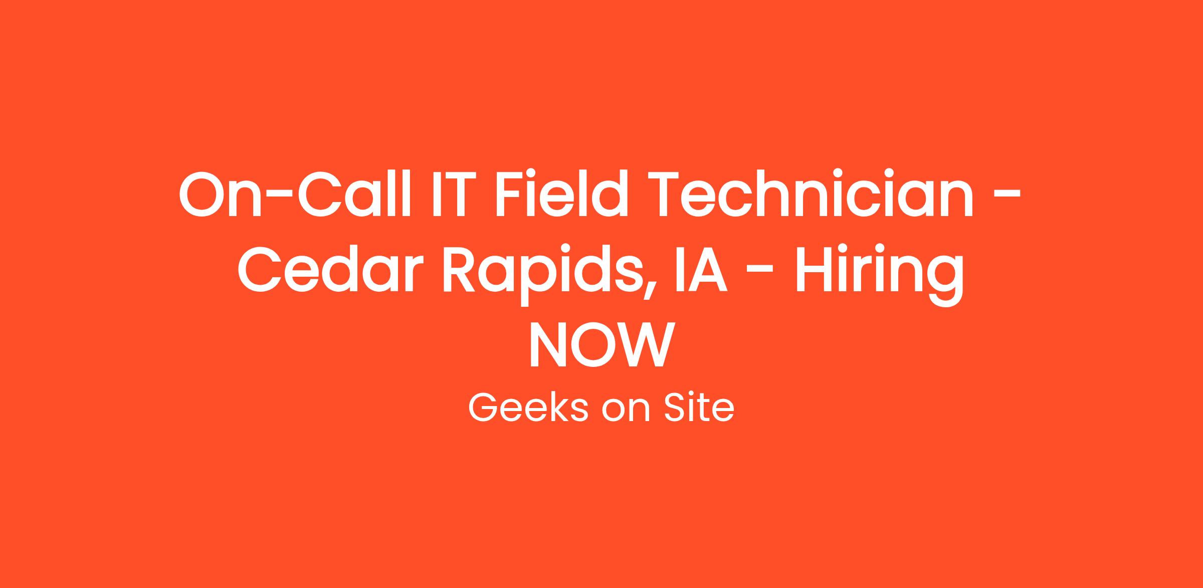 On-Call IT Field Technician - Cedar Rapids, IA - Hiring NOW