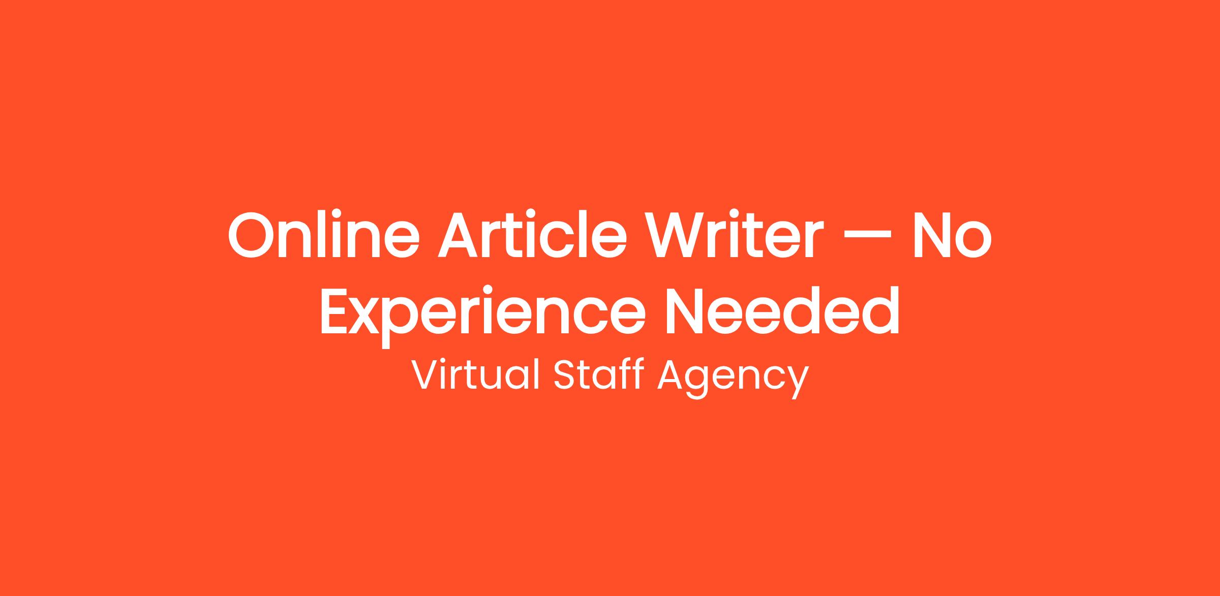 Virtual Staff Agency is currently looking for motivated individuals to join our team as a Online Article Writer — No Experience Needed. Earn money writing articles, blogs, and product descriptions from home. Flexible hours, multiple niches available, weekly pay. This is a fully remote, work-from-home position that can be done from anywhere in the United States. No prior experience is required — just a reliable internet connection and the motivation to learn. Whether you're looking to replace your current income or simply earn extra cash on the side, this flexible opportunity allows you to work as much or as little as you want.