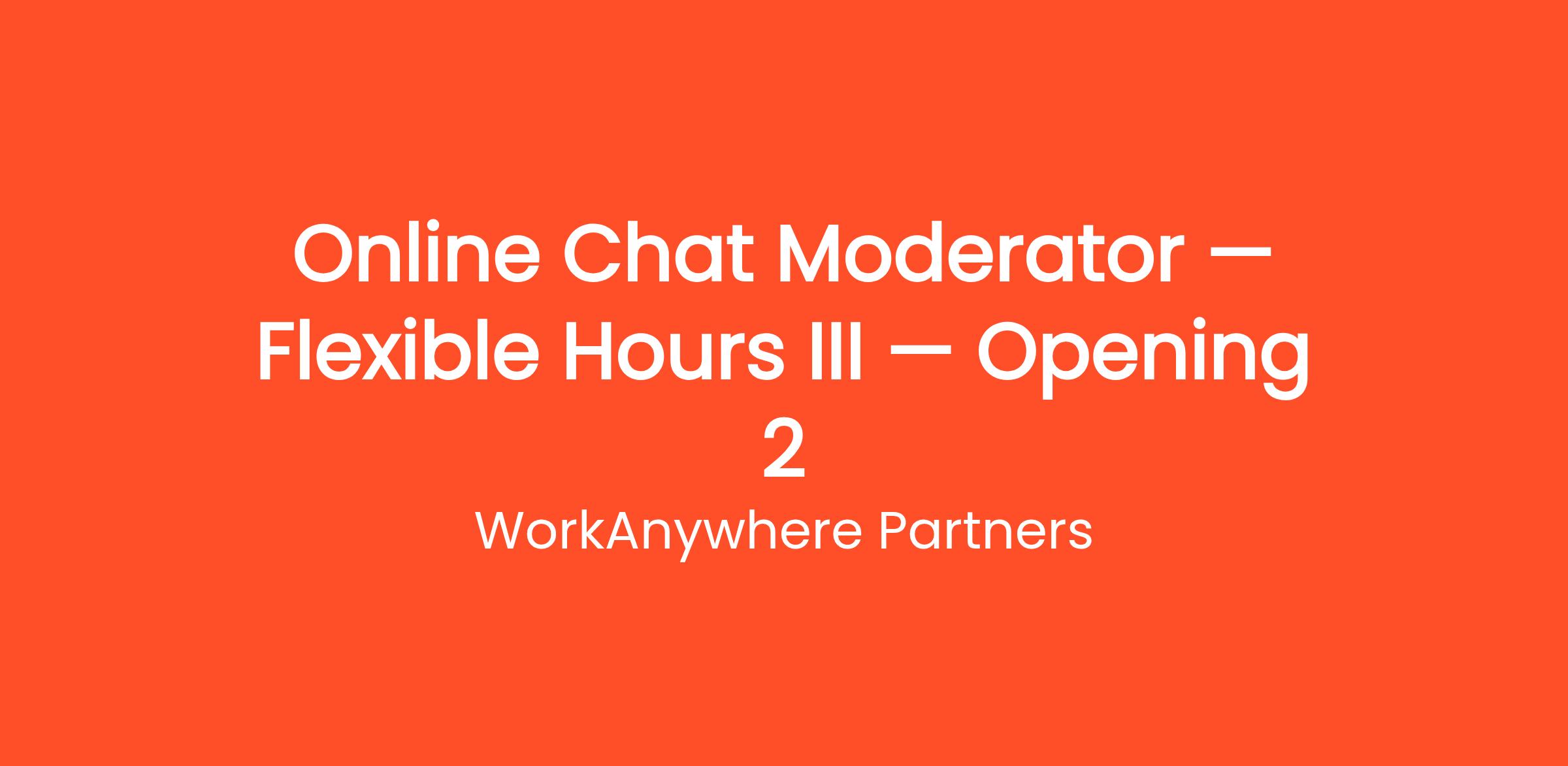 Thousands of people are already working from home as a Online Chat Moderator — Flexible Hours III — Opening 2 with WorkAnywhere Partners. Earn money answering live chat messages on websites — no phone calls, no experience needed, and 100% work from home. This work-from-home opportunity requires no commute, no degree, and no special prior experience. Get started on your own terms — choose your own hours and work as many or as few hours per week as you need. Payouts are processed regularly with multiple withdrawal options so you always get paid on time.