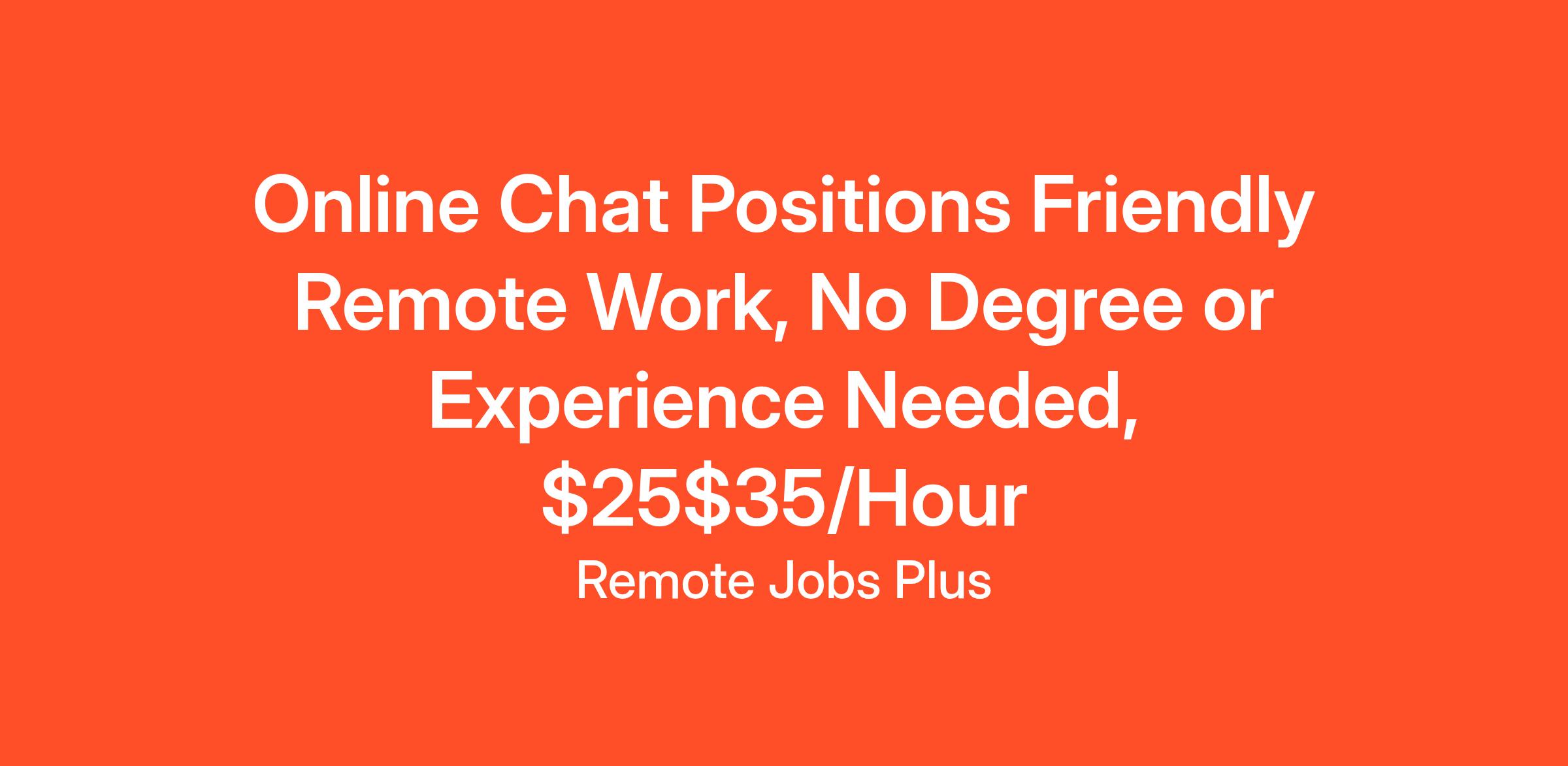 Online Chat Positions Friendly Remote Work, No Degree or Experience Needed, $25$35/Hour