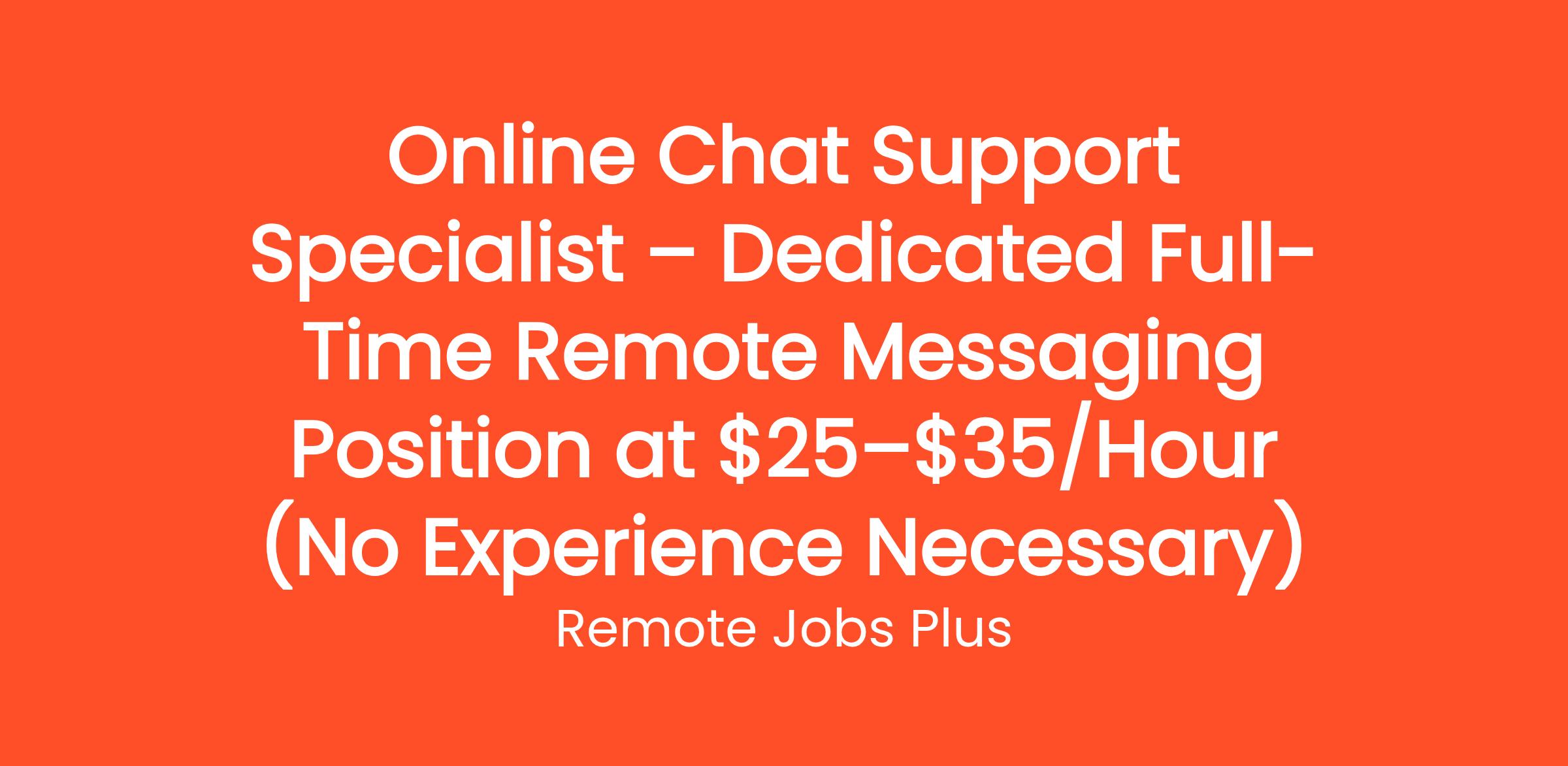 We are seeking an Online Chat Support professional to join our team. As an Online Chat Support professional, you will be responsible for providing customer support via chat. This is a full-time remote position, and we offer competitive pay of $25-$35 an hour.