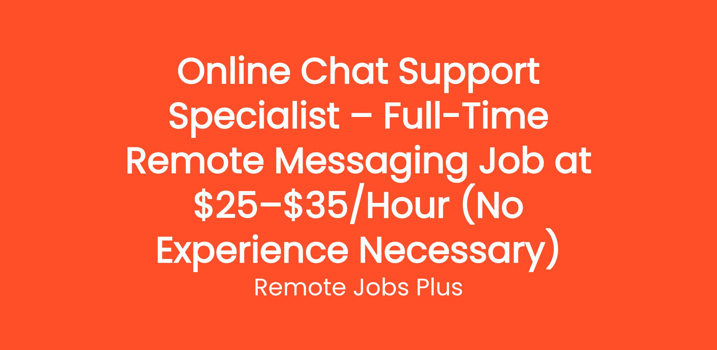 We are seeking an Online Chat Support professional to join our team. As an Online Chat Support professional, you will be responsible for providing customer support via chat. This is a full-time remote position, and we offer competitive pay of $25-$35 an hour.