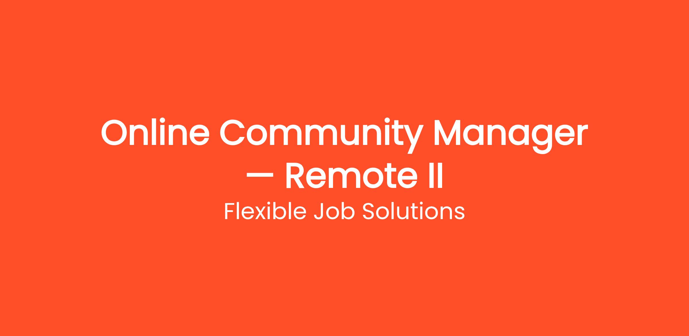 Thousands of people are already working from home as a Online Community Manager — Remote II with Flexible Job Solutions. Get paid to manage social media accounts from home. Work with brands on Instagram, TikTok, Facebook, and more — no degree required. This work-from-home opportunity requires no commute, no degree, and no special prior experience. Get started on your own terms — choose your own hours and work as many or as few hours per week as you need. Payouts are processed regularly with multiple withdrawal options so you always get paid on time.