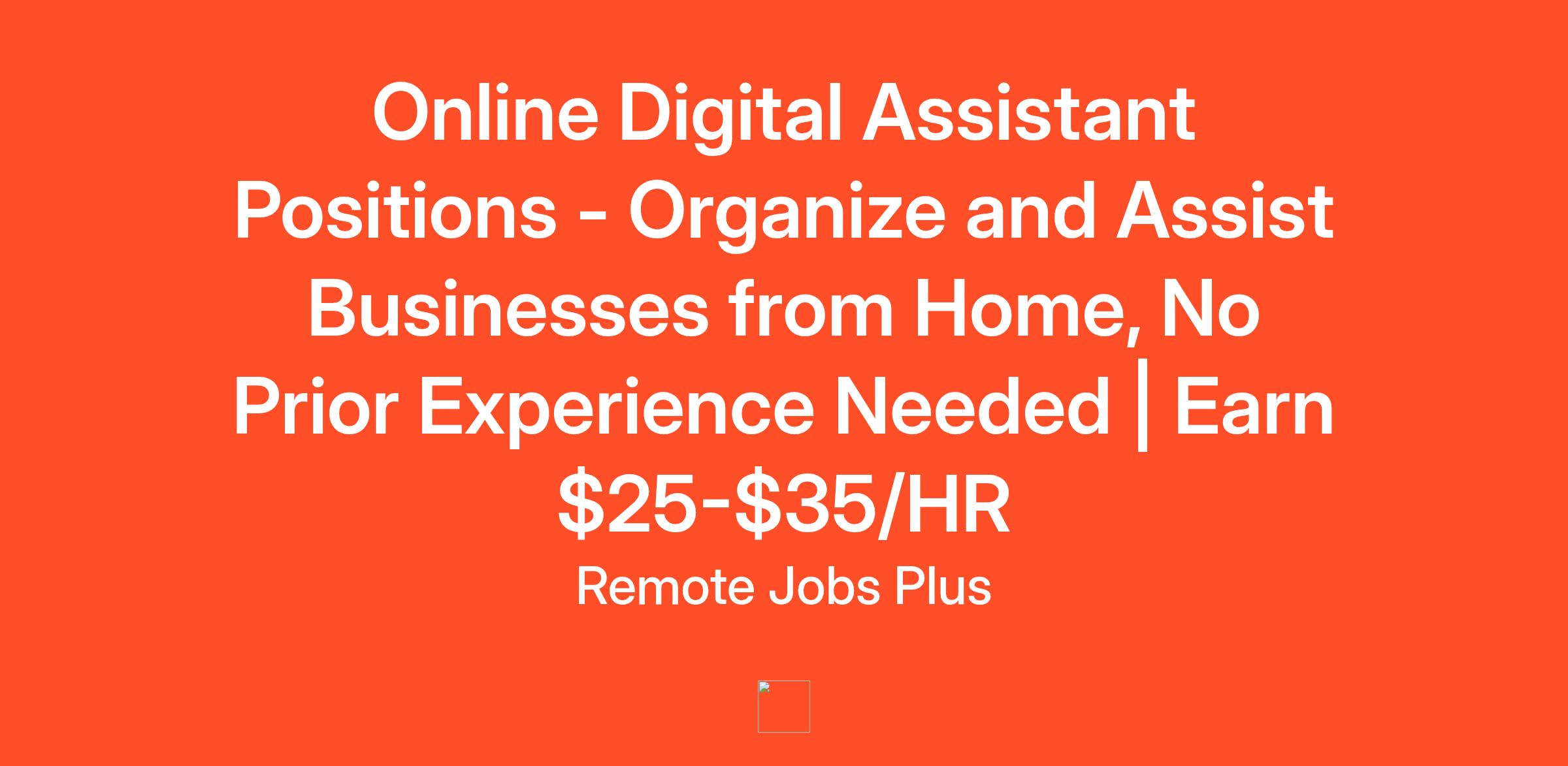 Online Digital Assistant Positions - Organize and Assist Businesses from Home, No Prior Experience Needed | Earn $25-$35/HR