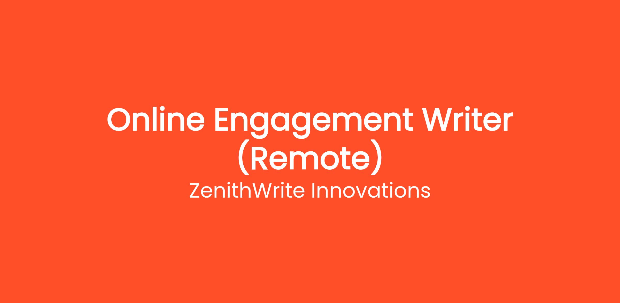 This Sunday, ZenithWrite Innovations extends an invitation to dedicated individuals seeking a stable and rewarding career path in digital content. Our Online Engagement Writer (Remote) role offers the perfect opportunity to start your week with purpose, contributing to a dynamic team from the comfort of your home. We prioritize career stability and consistent income within a professional, growth-oriented environment.
