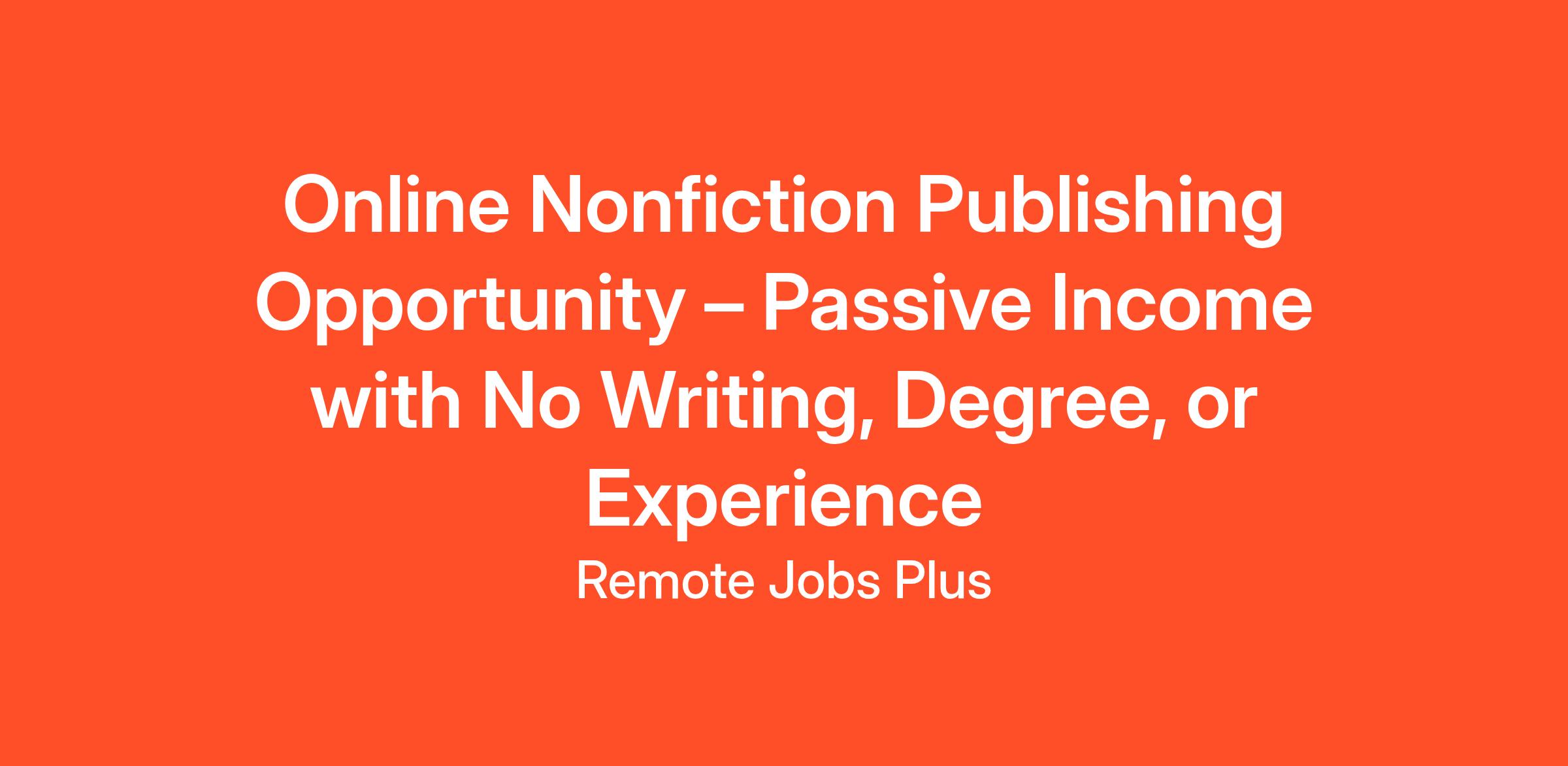 Online Nonfiction Publishing Opportunity – Passive Income with No Writing, Degree, or Experience