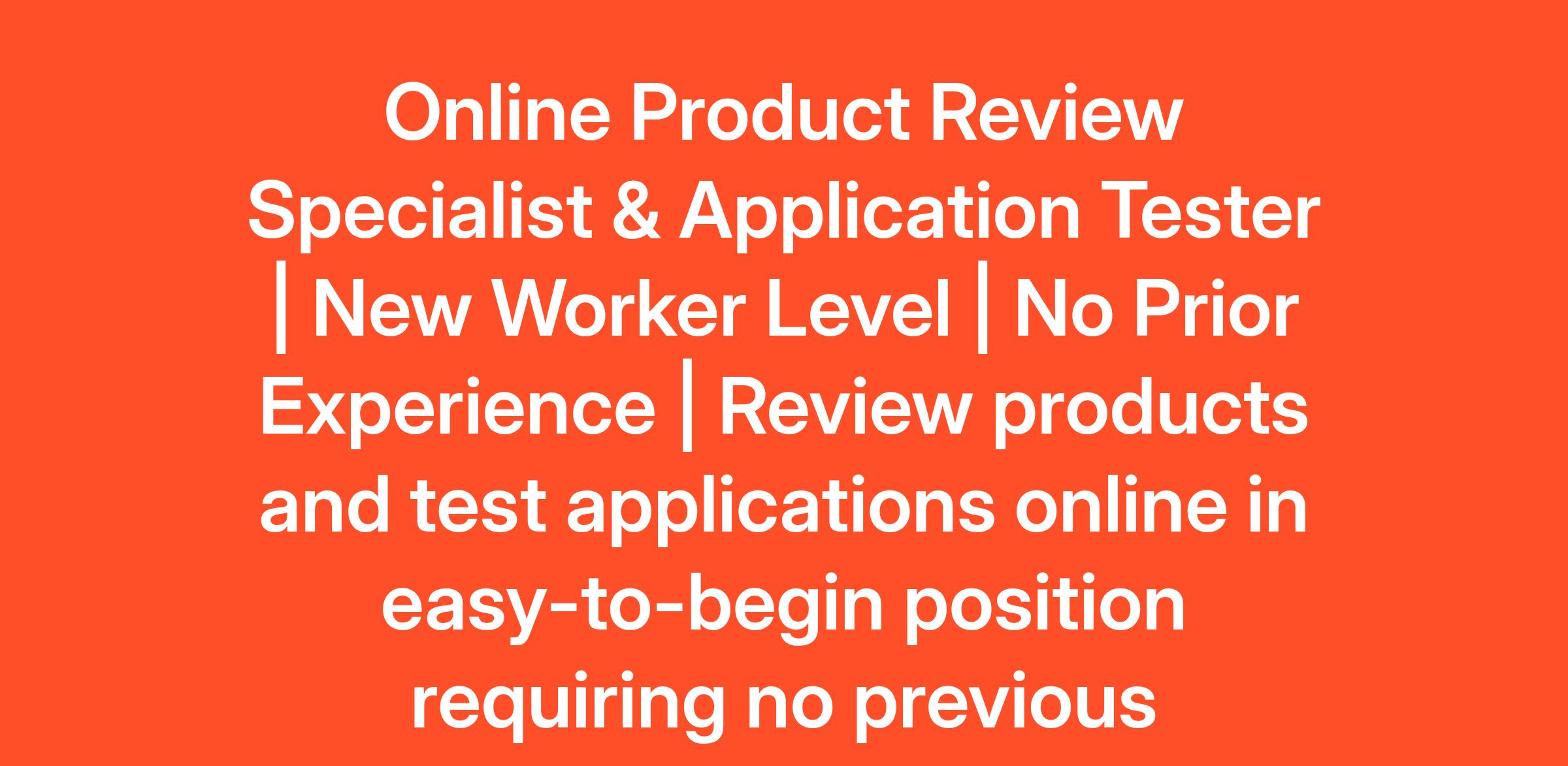 Online Product Review Specialist & Application Tester | New Worker Level | No Prior Experience | Review products and test applications online in easy-to-begin position requiring no previous experience.