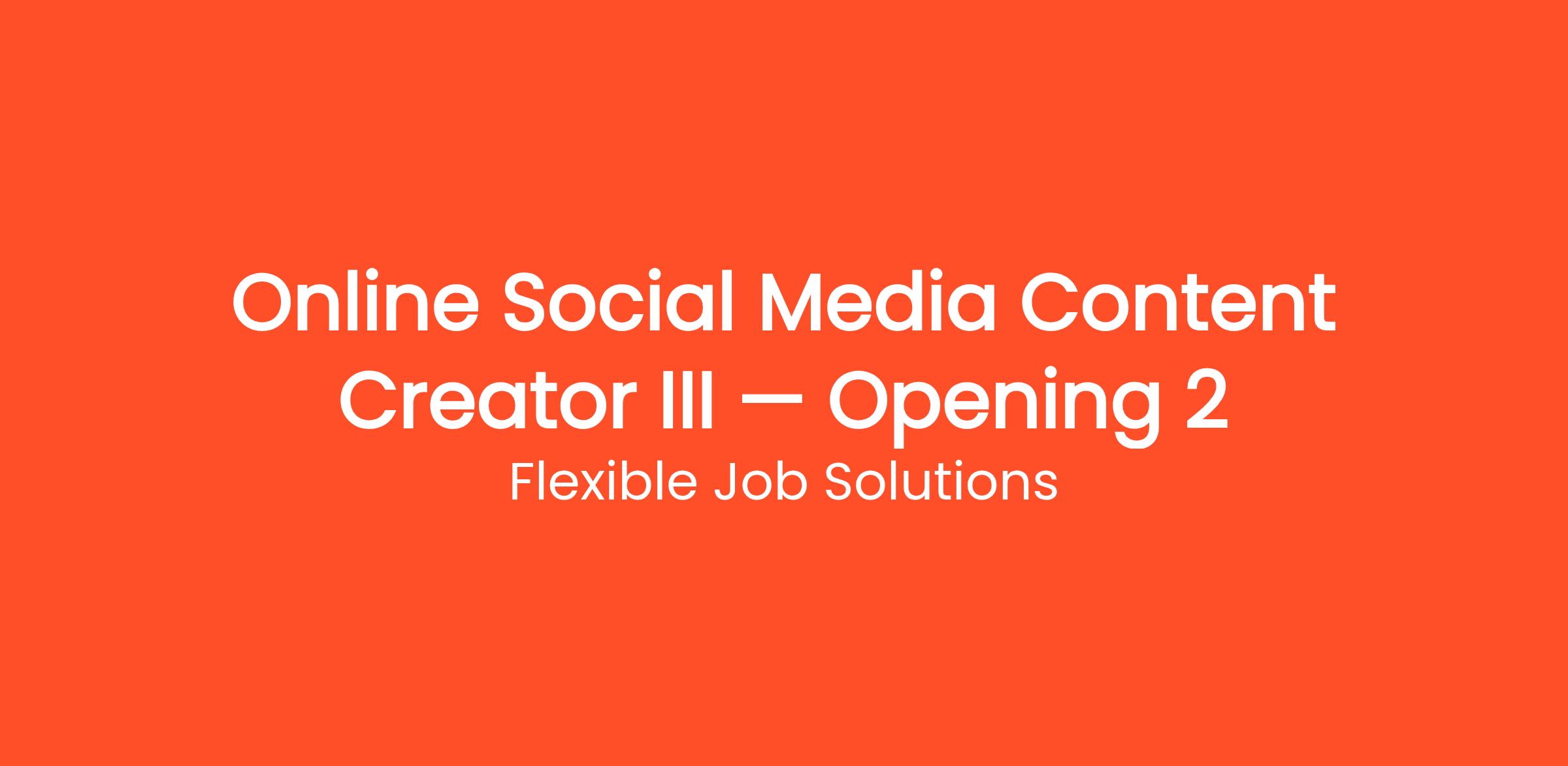 Thousands of people are already working from home as a Online Social Media Content Creator III — Opening 2 with Flexible Job Solutions. Get paid to manage social media accounts from home. Work with brands on Instagram, TikTok, Facebook, and more — no degree required. This work-from-home opportunity requires no commute, no degree, and no special prior experience. Get started on your own terms — choose your own hours and work as many or as few hours per week as you need. Payouts are processed regularly with multiple withdrawal options so you always get paid on time.
